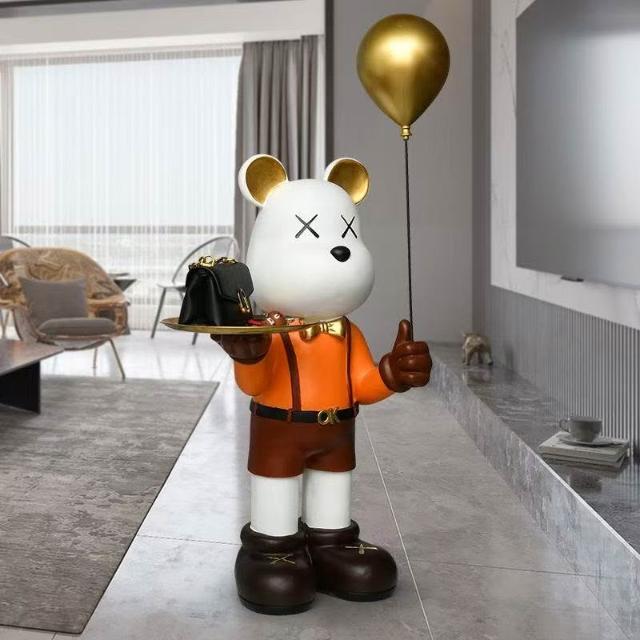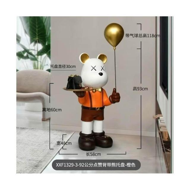 輕奢暴力熊托盤擺件 收納擺件 家居客廳大型落地裝飾 軟裝飾品 沙發旁邊幾擺設 落地擺件 裝飾品 收納擺