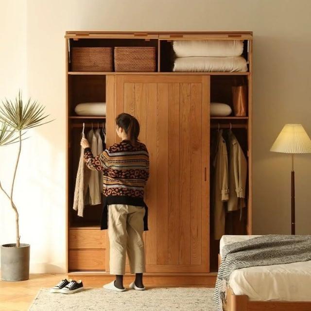 免運 破損補發 北歐實木衣櫃 家用櫻桃木移門收納衣櫥臥室簡約落地靠墻儲物櫃
