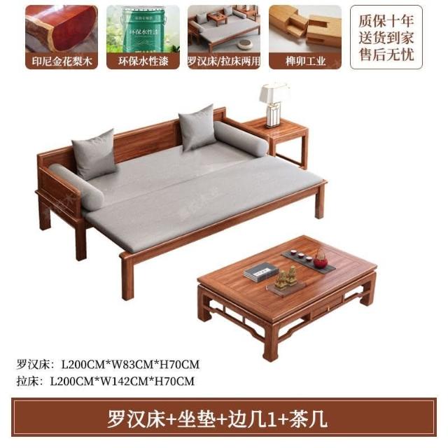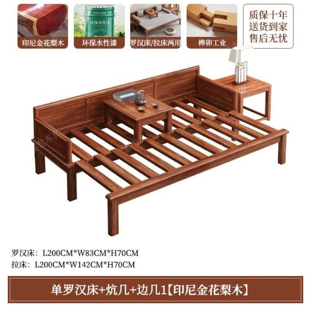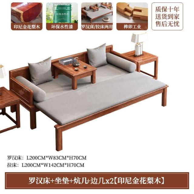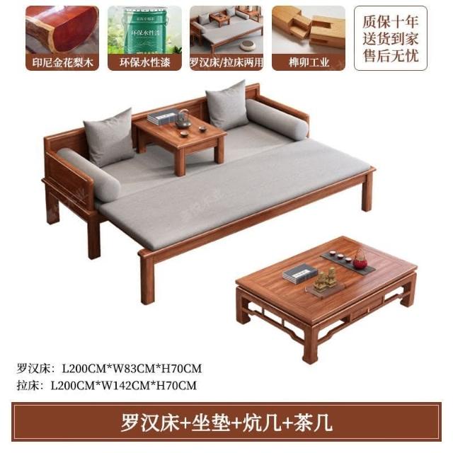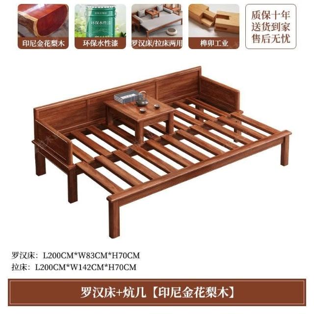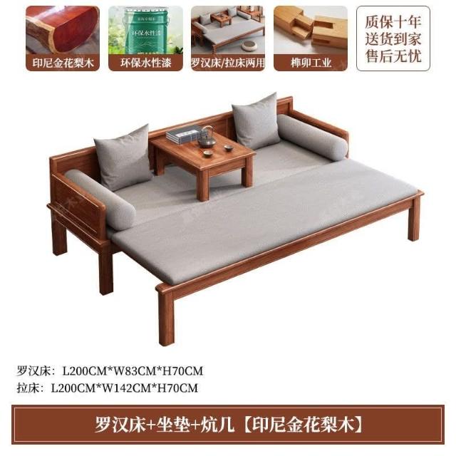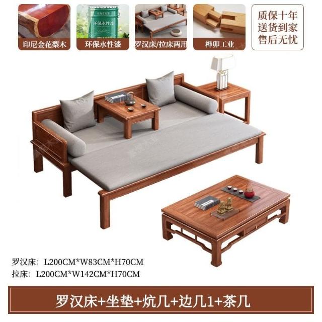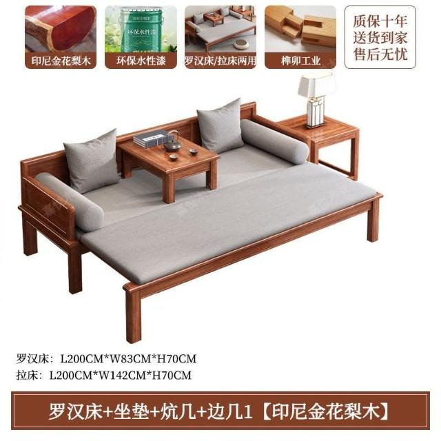 免運 可開發票 新中式金花梨木實木羅漢床客廳家用新款簡約可推拉一體沙髮床組閤
