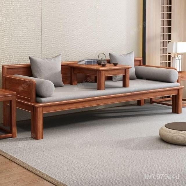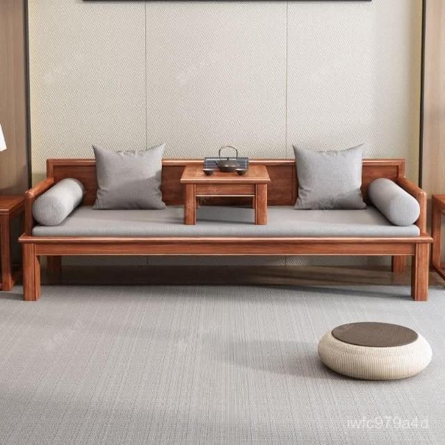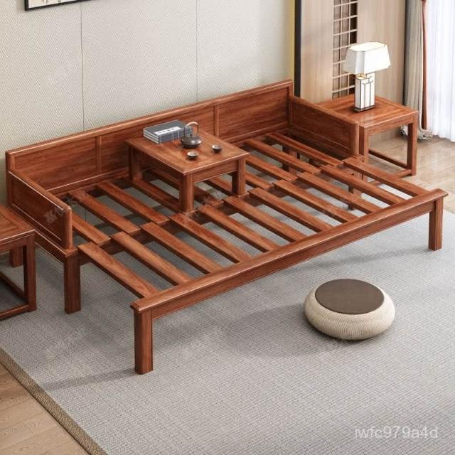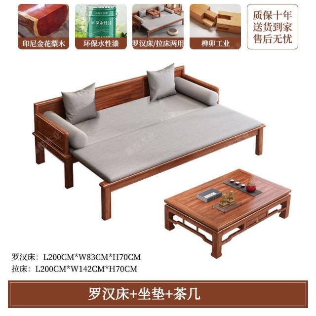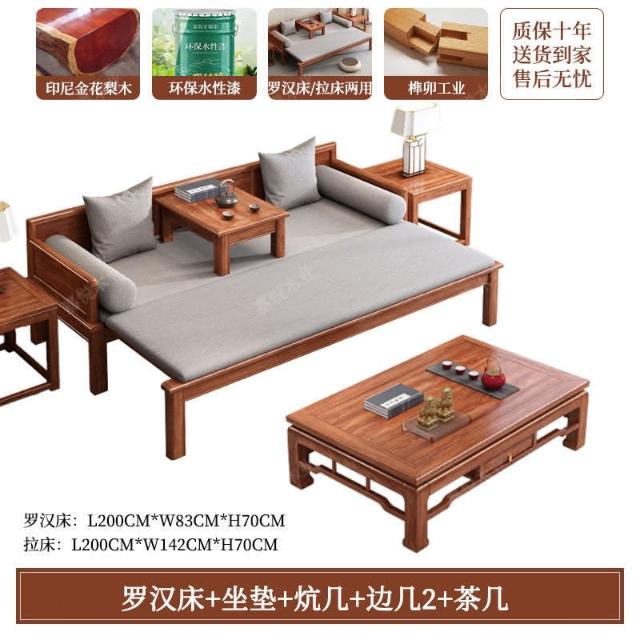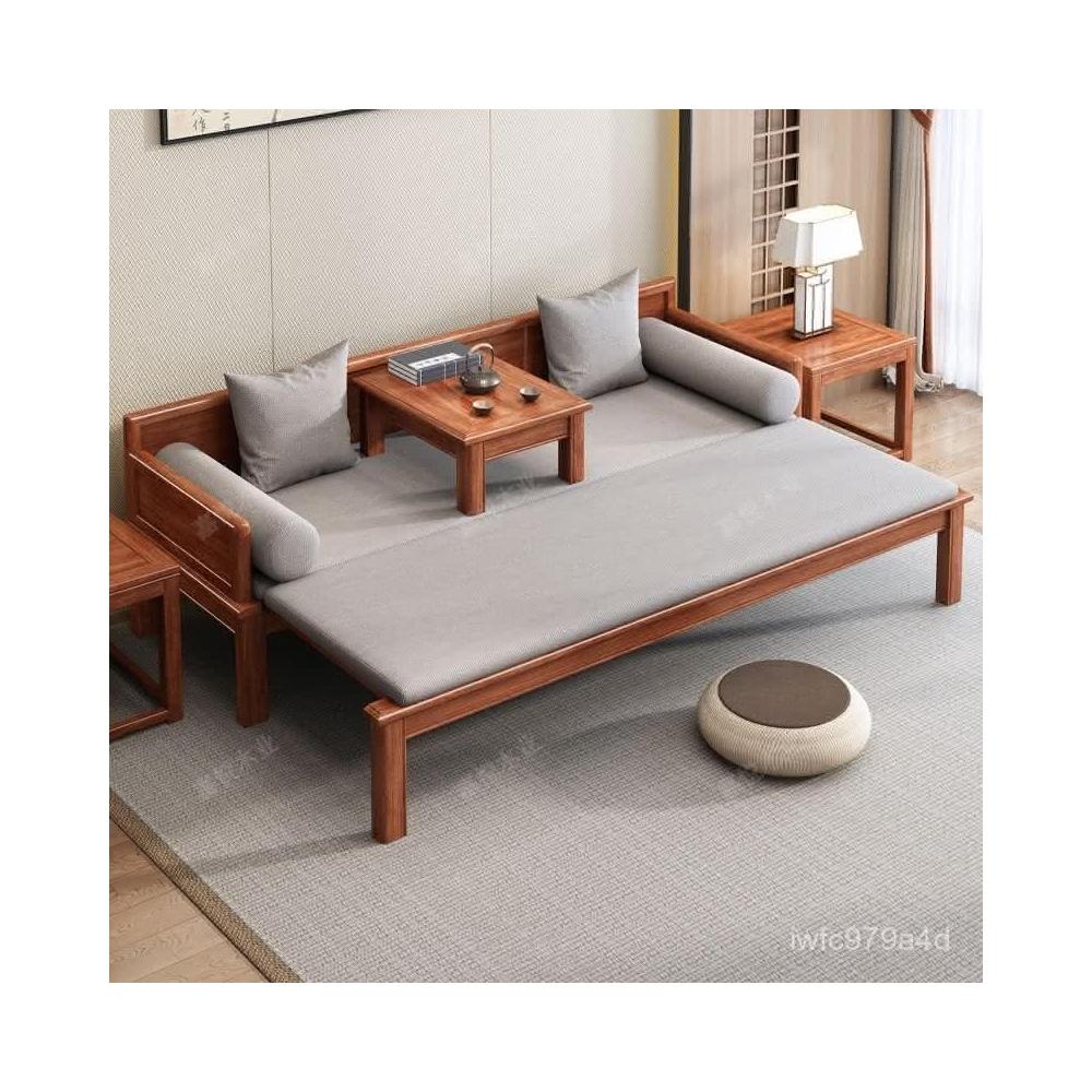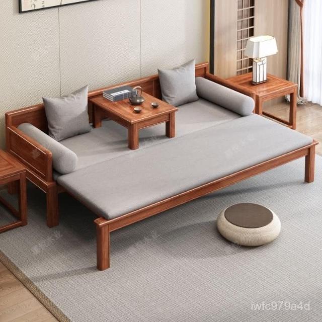 免運 可開發票 新中式金花梨木實木羅漢床客廳家用新款簡約可推拉一體沙髮床組閤