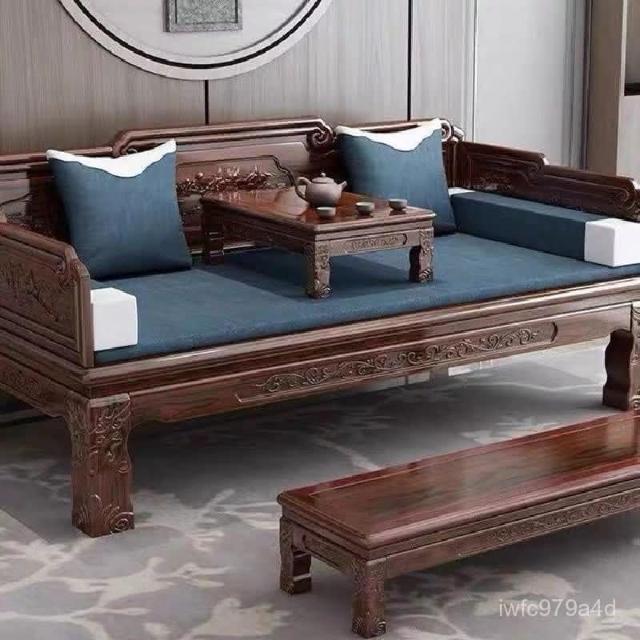 免運 可開發票 榆木羅漢床羅漢榻中式實木仿古榻榻米古典民宿原木羅漢床鵰花床榻