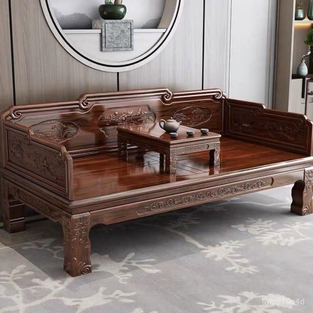 免運 可開發票 榆木羅漢床羅漢榻中式實木仿古榻榻米古典民宿原木羅漢床鵰花床榻