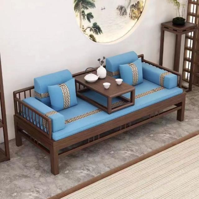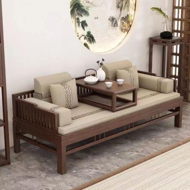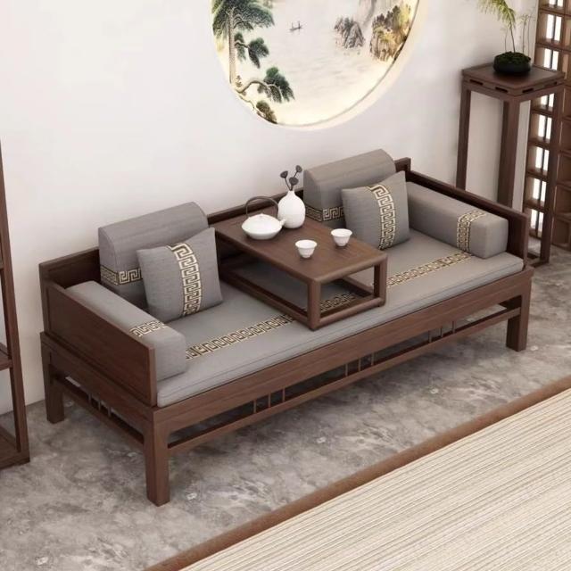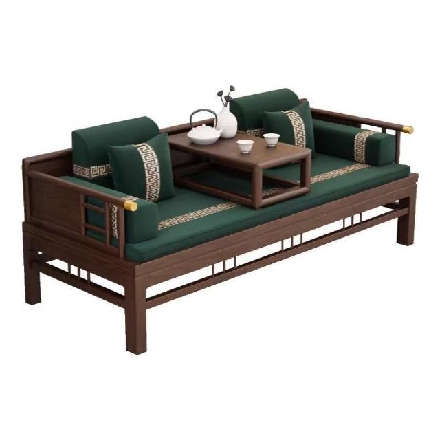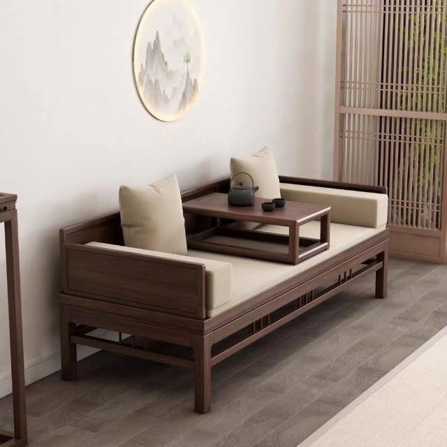 免運 可開發票 新中式實木老榆木臥榻塌推拉沙髮羅漢床茶桌椅組閤椅客廳套裝家具