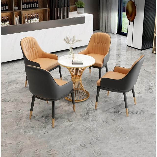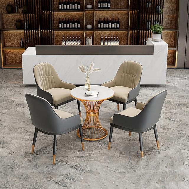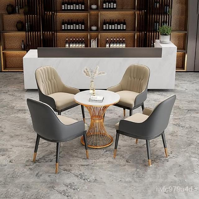 新品上市 售樓處部洽談區桌椅現代輕奢談判接待大理石小圓桌一桌四椅組閤zz