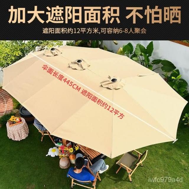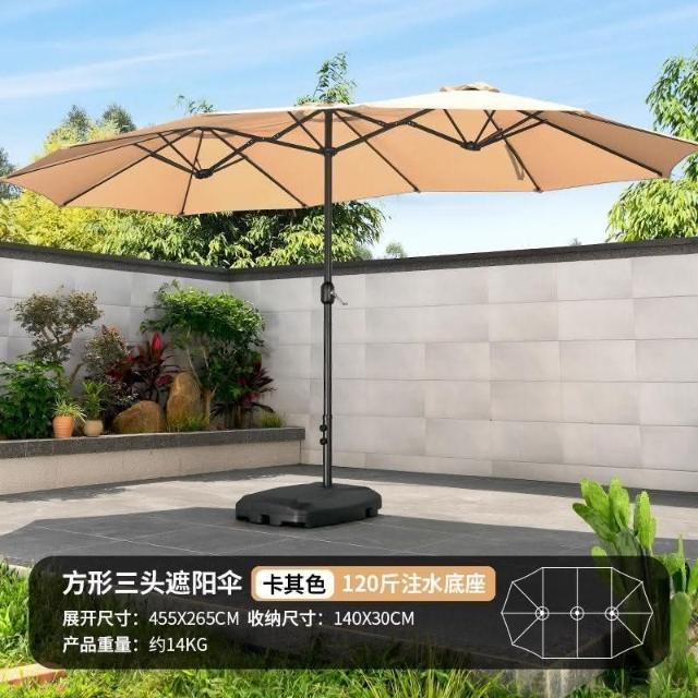 免運 可開發票 三頭遮陽傘戶外庭院休閒中柱傘外擺大傘擺攤大雨傘室外花園露營傘