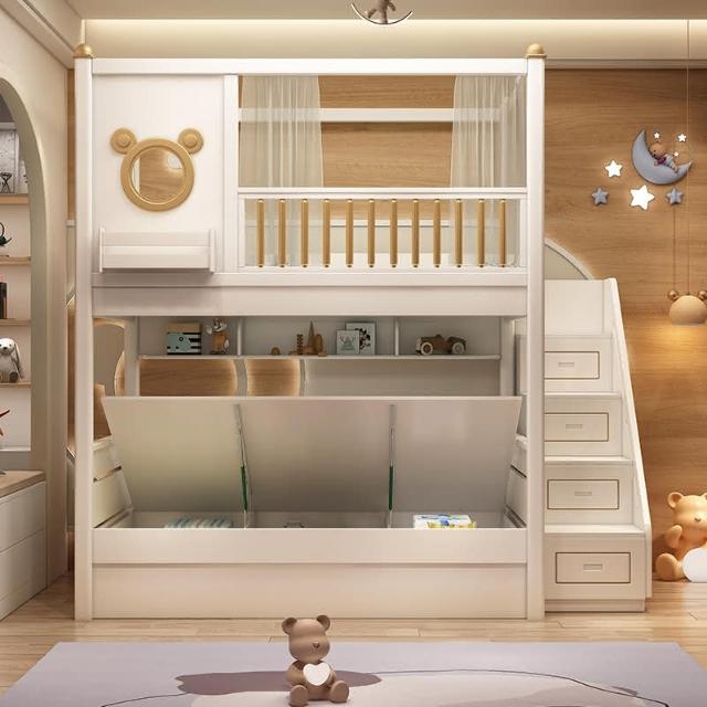 兒童上下床高架床上下鋪高低雙層兩層上床下桌書桌衣櫃一體組閤床