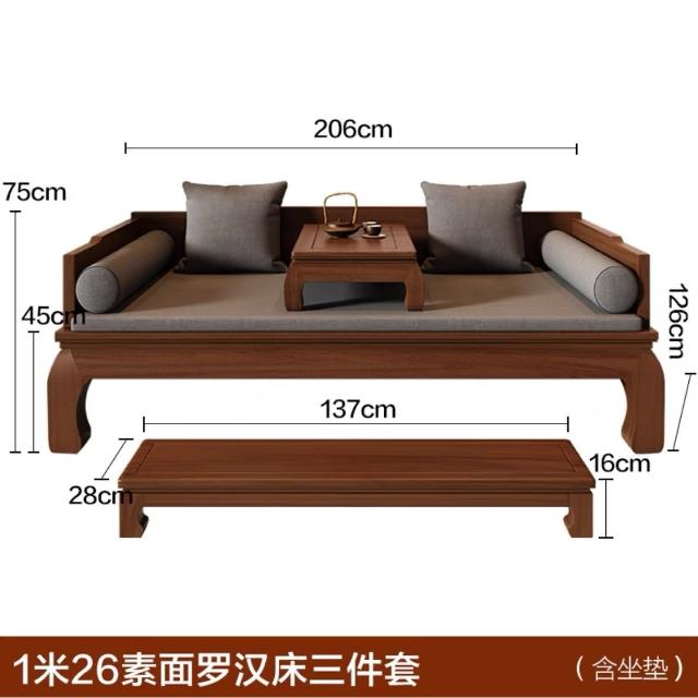 免運 可開發票 實木羅漢床新中式沙髮床兩用小戶型客廳菠蘿格榆木家具書房貴妃榻
