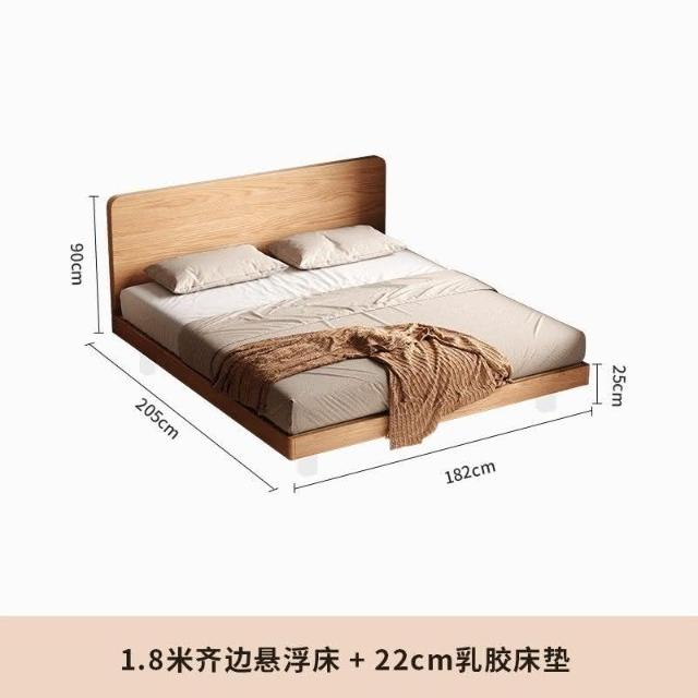 橡木全實木床1.2米1.8米齊邊懸浮床簡約現代次臥兒童床成人單人床 GACO