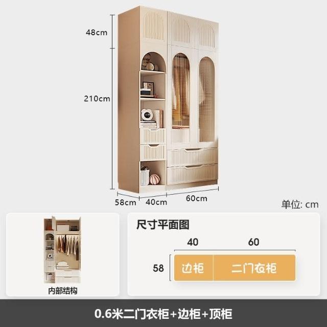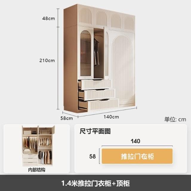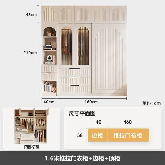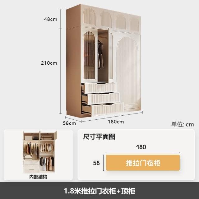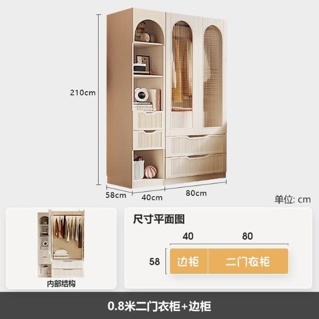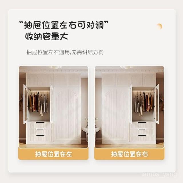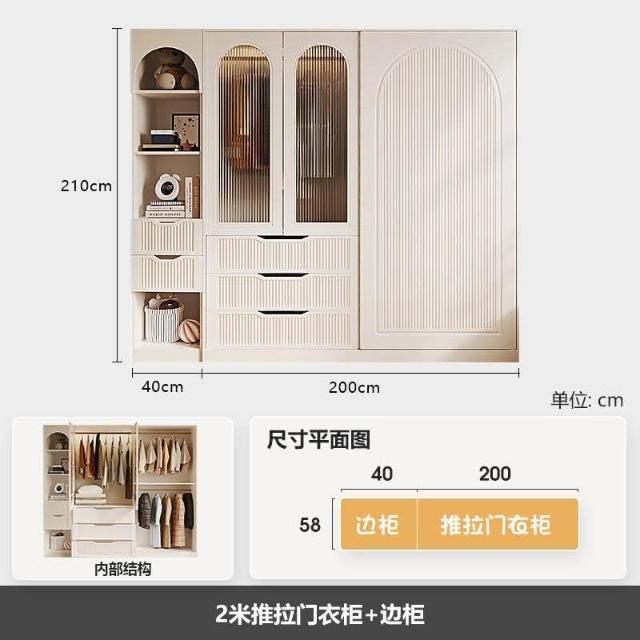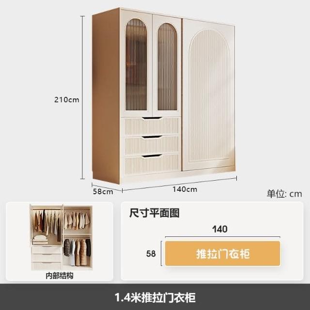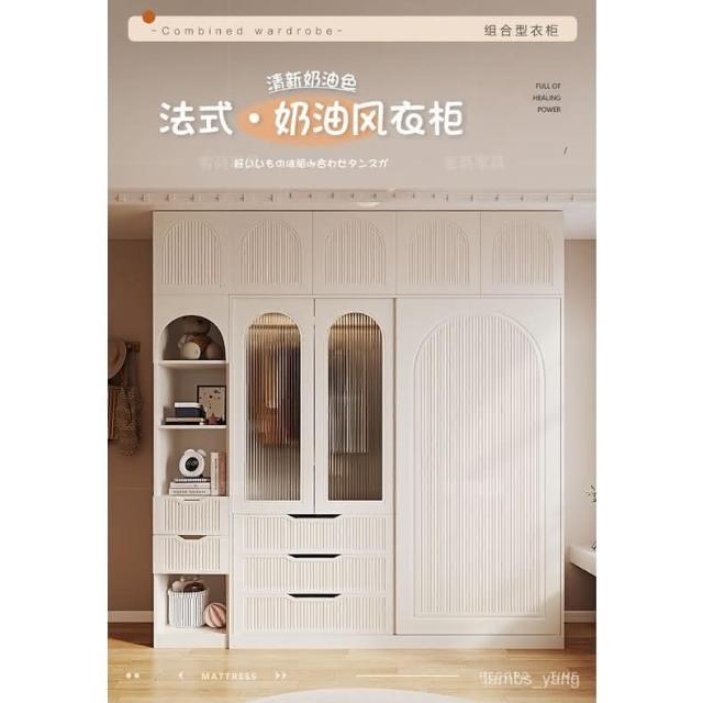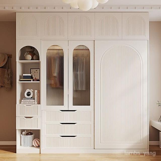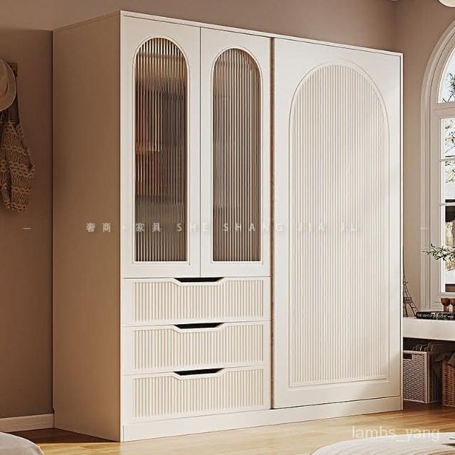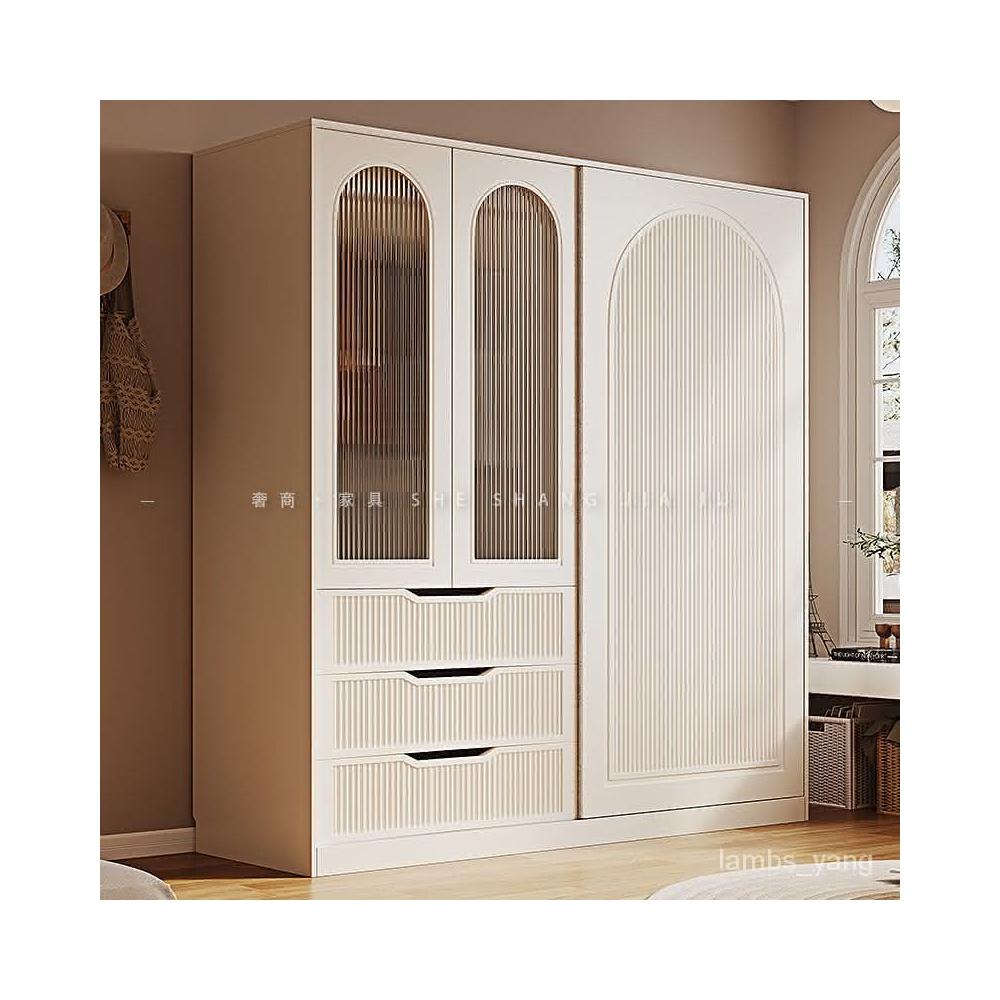 法式奶油風衣櫃小戶型推拉門傢用臥室儲物櫃現代簡約高檔成品衣櫥