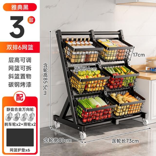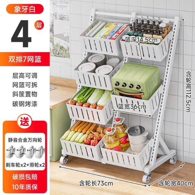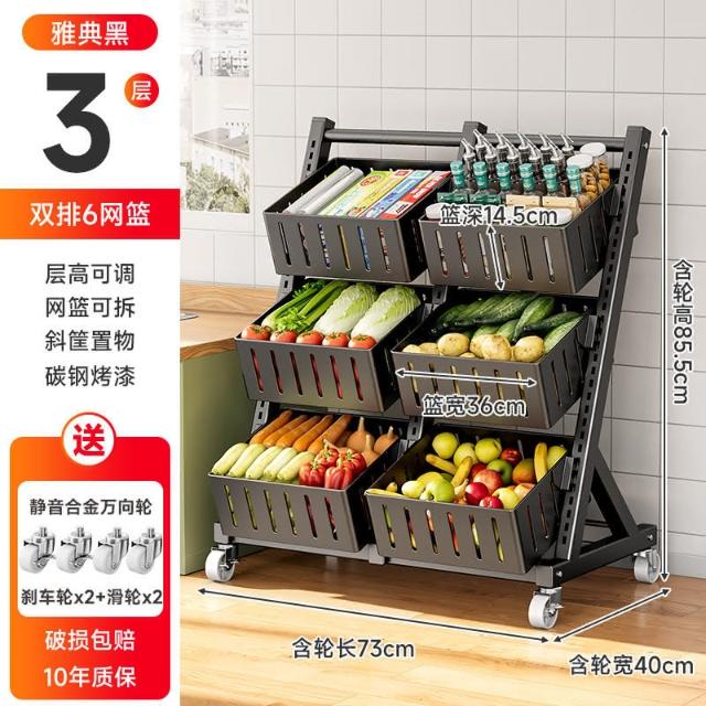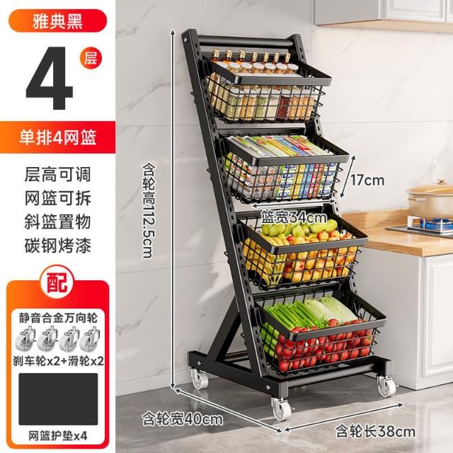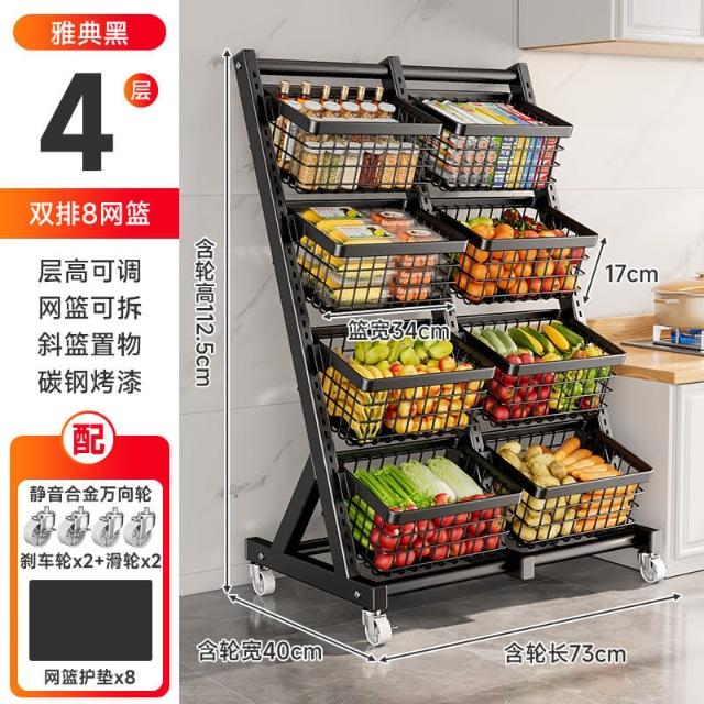 廚房置物架落地多層家用水果蔬菜放菜架子多功能菜籃子零食收納架 收納櫃 儲物櫃 多功能放水果零食架子