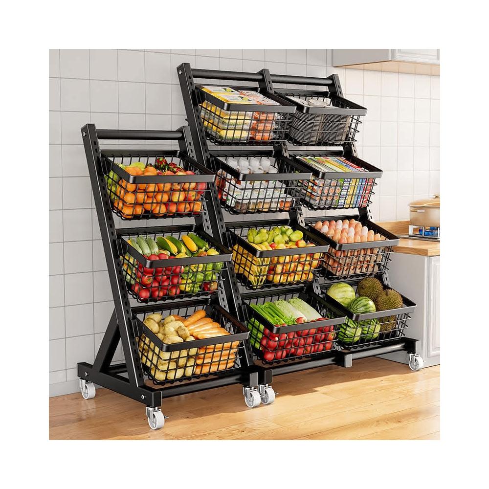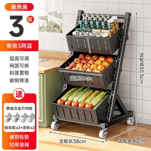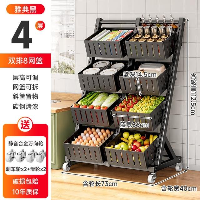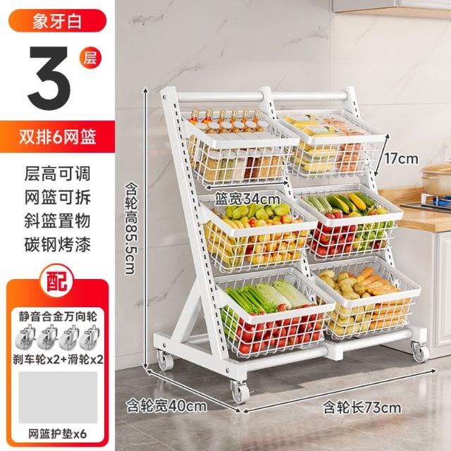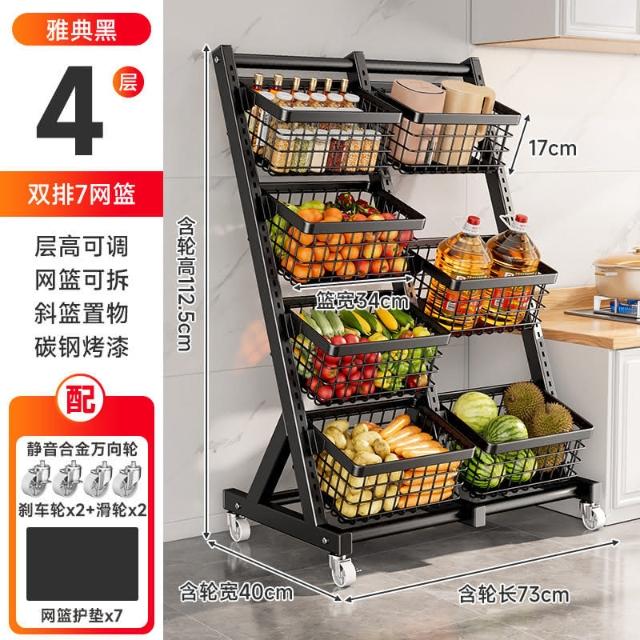 廚房置物架落地多層家用水果蔬菜放菜架子多功能菜籃子零食收納架 收納櫃 儲物櫃 多功能放水果零食架子