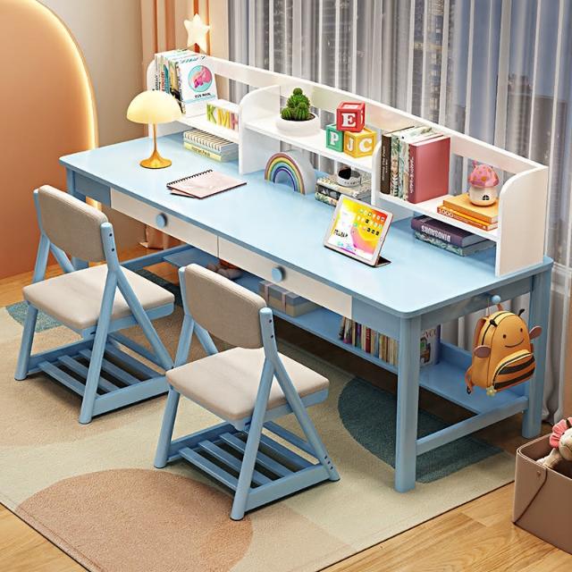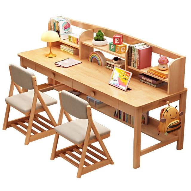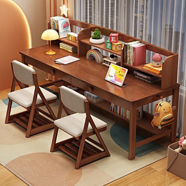 實木書桌書架一體桌兒童學習桌靠窗長條辦公桌家用卧室雙人寫字桌 雙人書桌 靠牆桌 窄桌 工作台 辦公桌 電腦桌