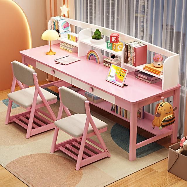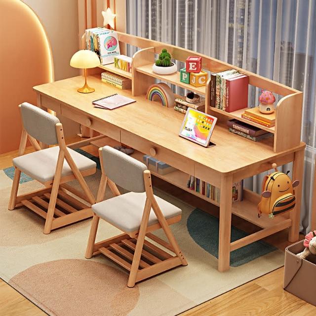 實木書桌書架一體桌兒童學習桌靠窗長條辦公桌家用卧室雙人寫字桌 雙人書桌 靠牆桌 窄桌 工作台 辦公桌 電腦桌
