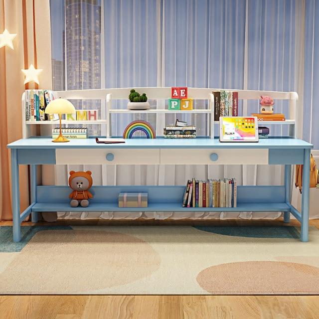 實木書桌書架一體桌兒童學習桌靠窗長條辦公桌家用卧室雙人寫字桌 雙人書桌 靠牆桌 窄桌 工作台 辦公桌 電腦桌