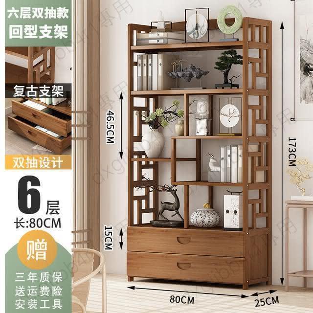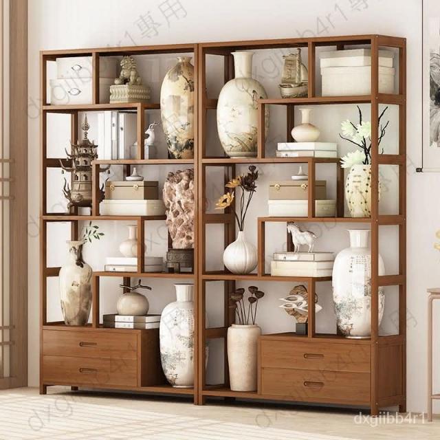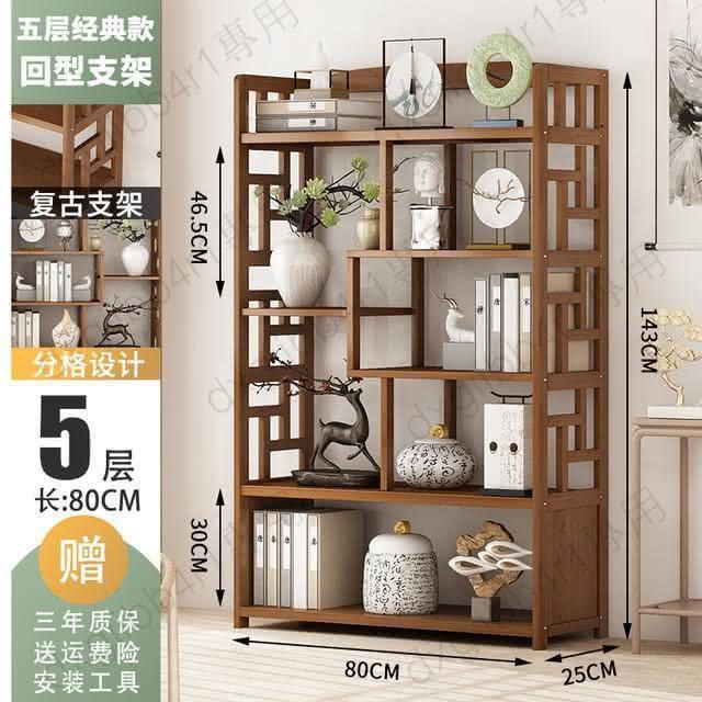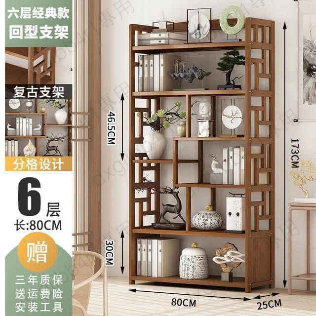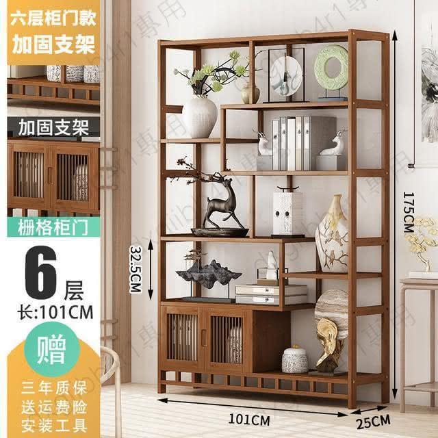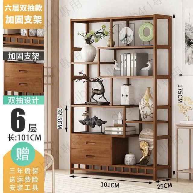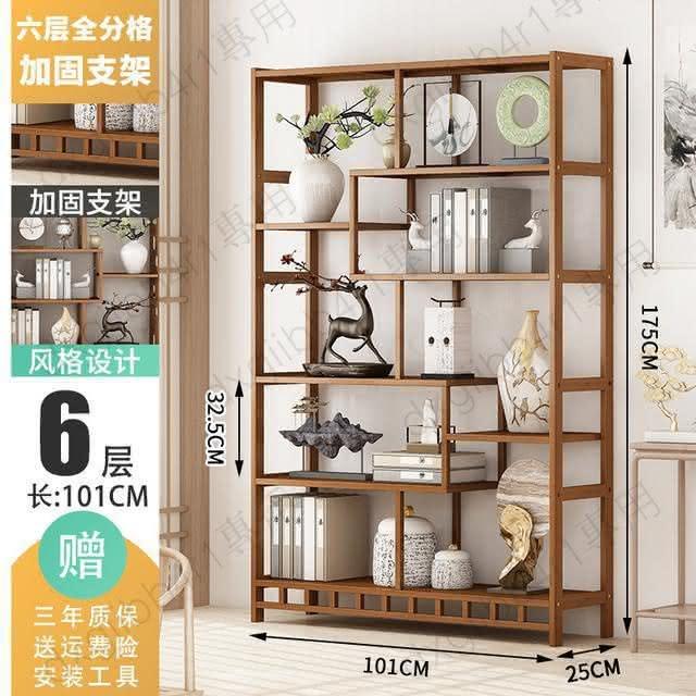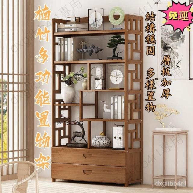 免運 博古架简易中式书架书柜落地隔断置物架楠竹多层书房客厅组合柜子