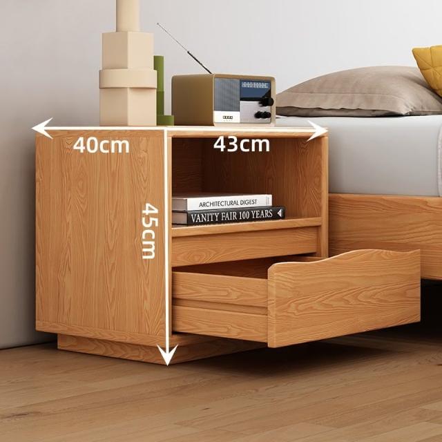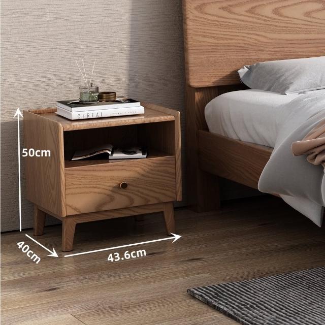 實木床頭櫃現代簡約白蠟木原木色火星巖色北歐小戶型床頭收納櫃