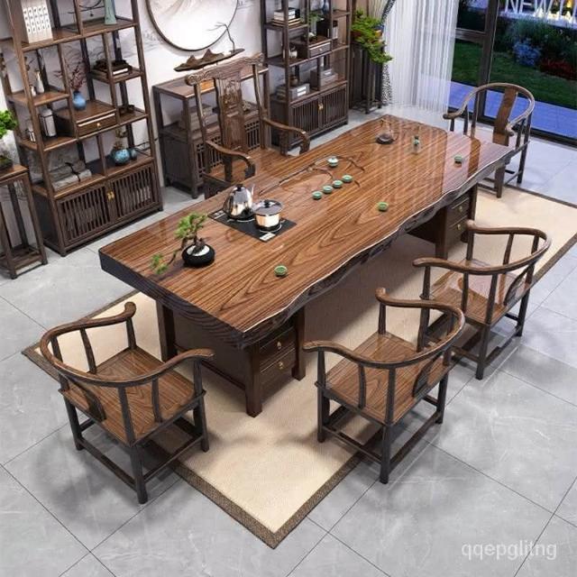 免運 工廠直銷 原木實木整闆大闆茶桌椅組閤中式茶幾辦公室泡茶一體茶臺客廳家用 實木泡茶桌 功夫茶 實木桌