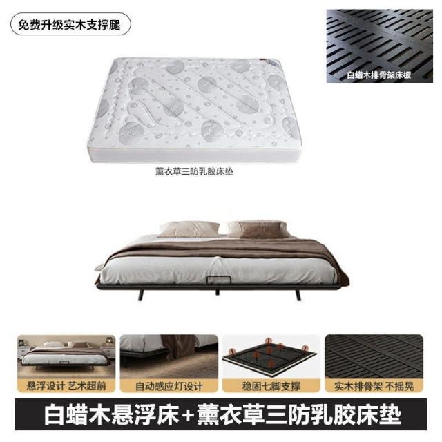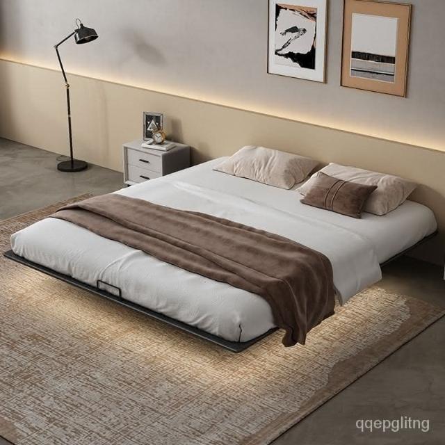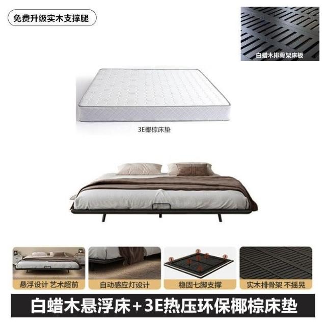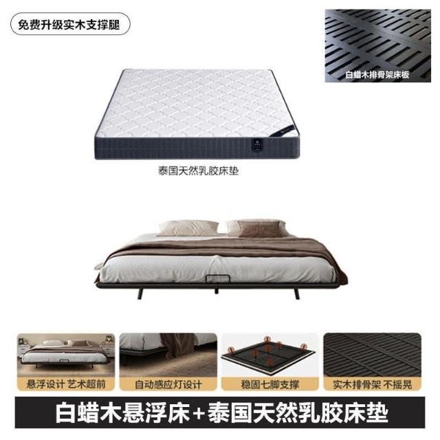 免運 實木床架#懸浮床 白蠟木懸浮床意式民宿侘寂風主臥大床現代無床頭工業風極簡雙人床 5寸床 6寸床 排骨架