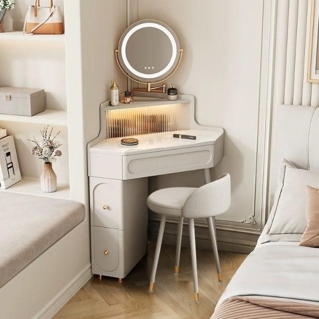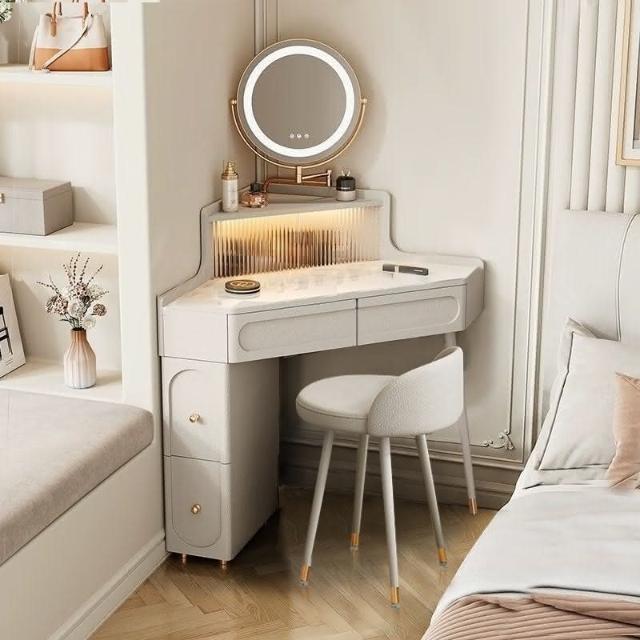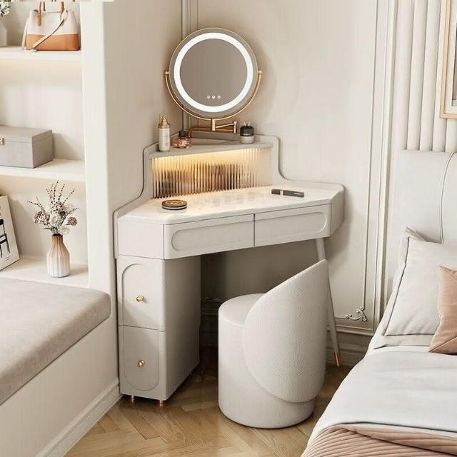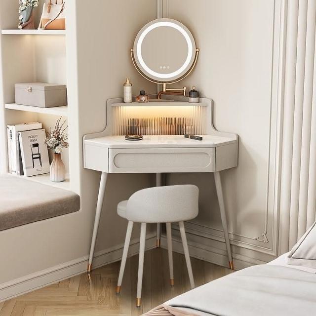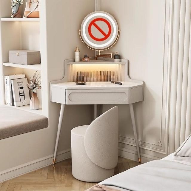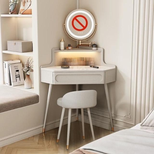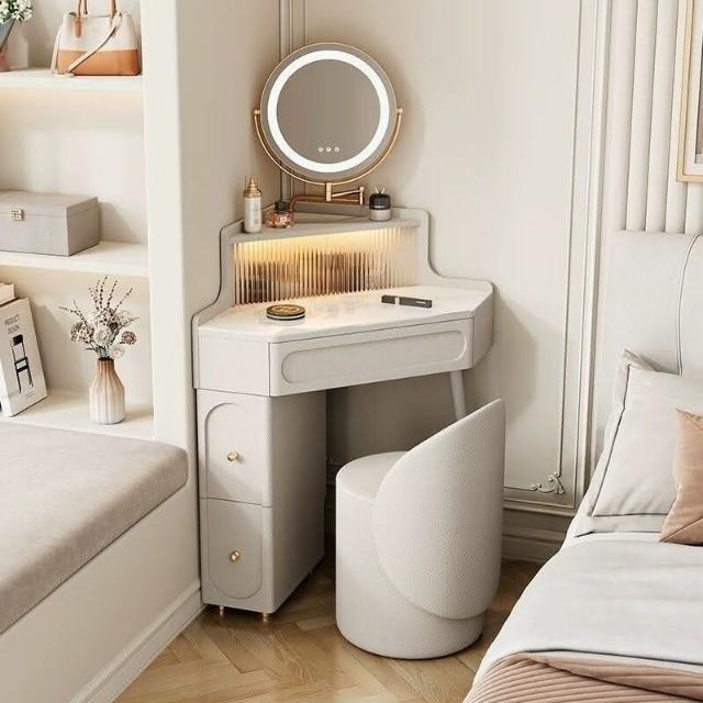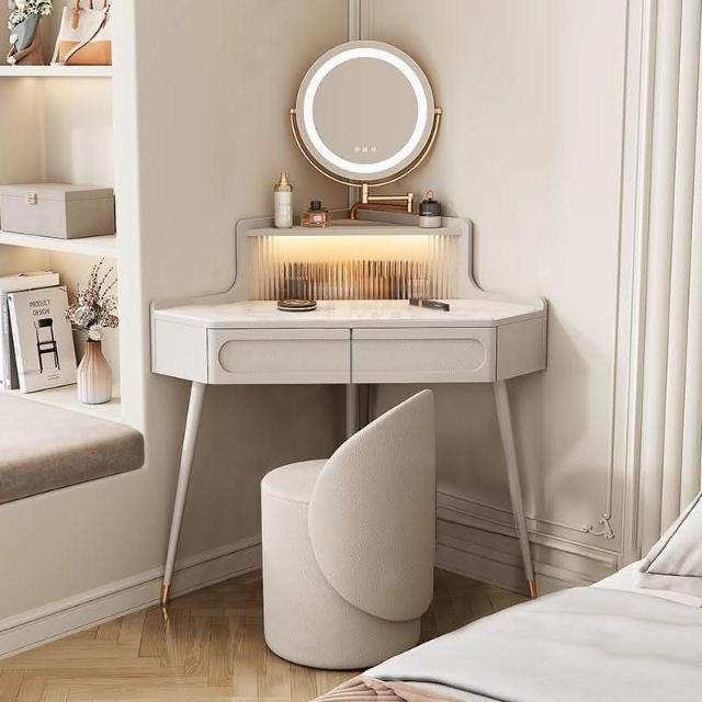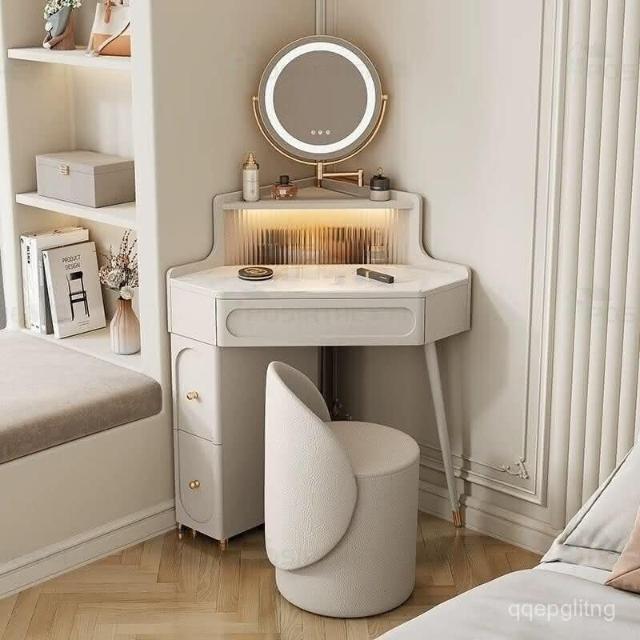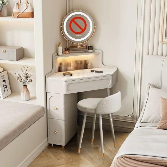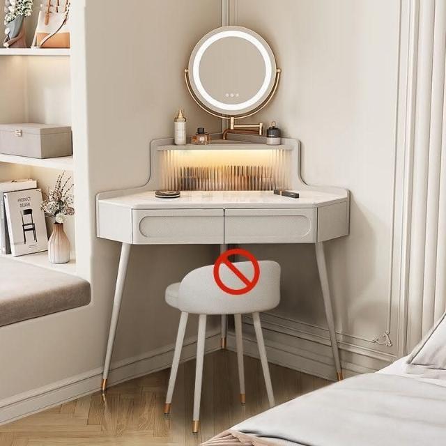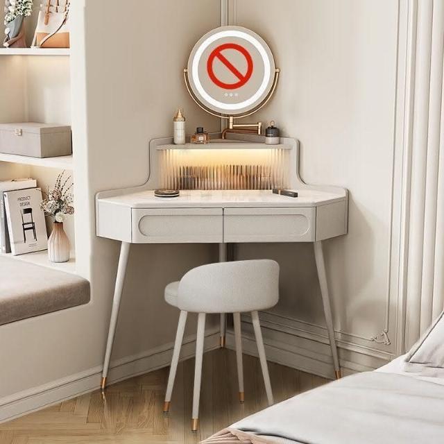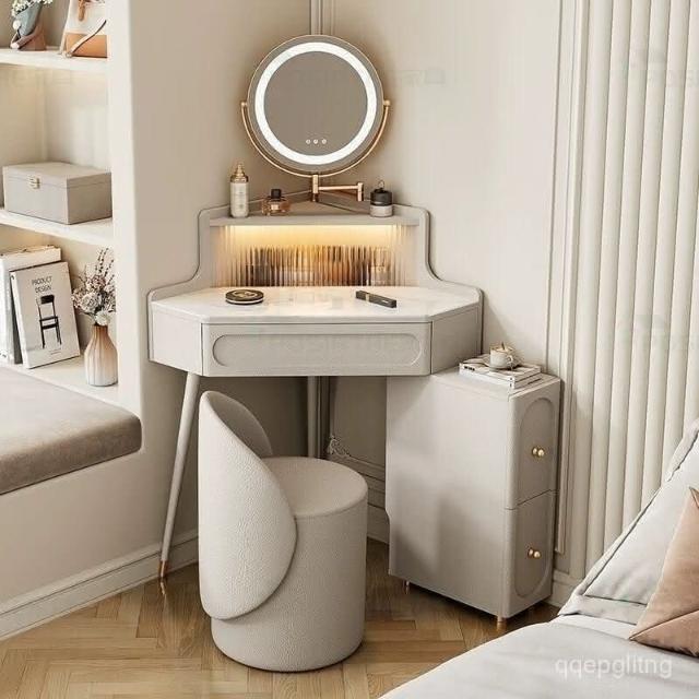 轉角化妝桌 轉角梳妝臺法式奶油風小戶型三角化妝桌巖闆臥室墻角鬥櫃一體L型化妝桌 梳妝桌 梳妝臺 化妝臺 化00