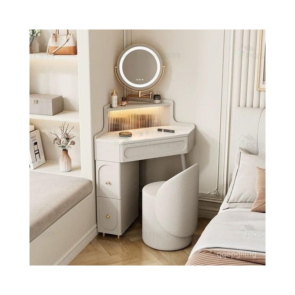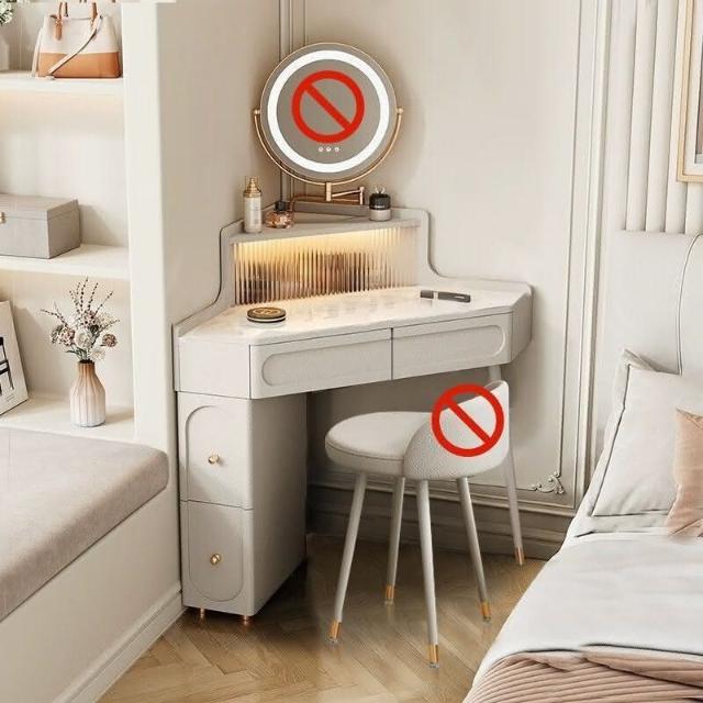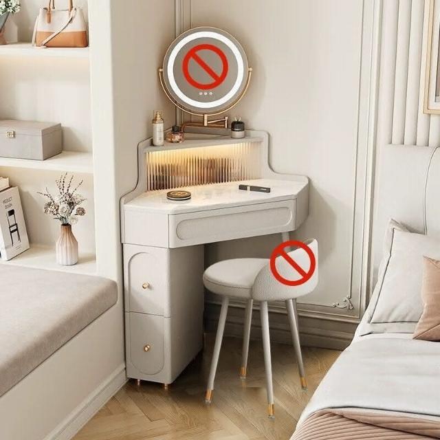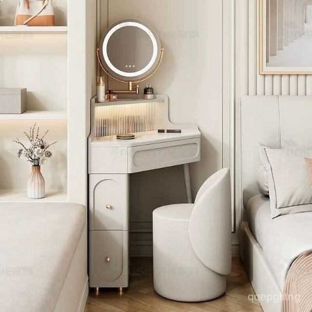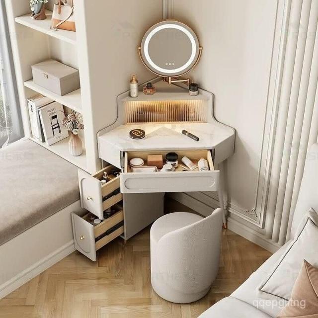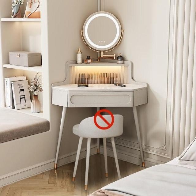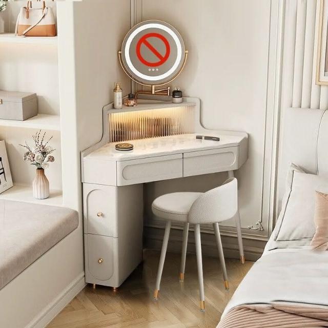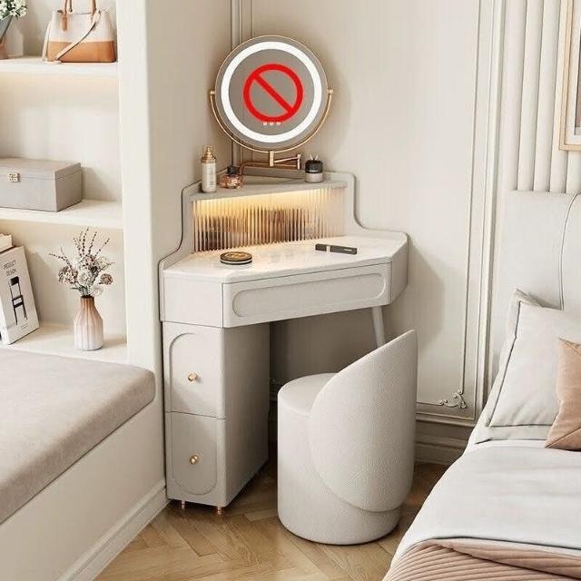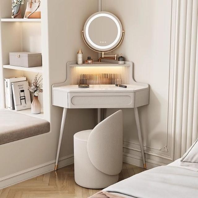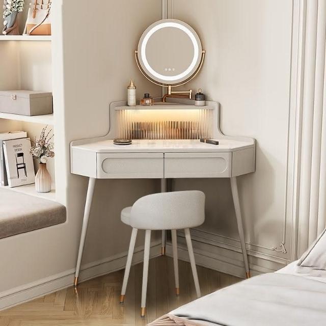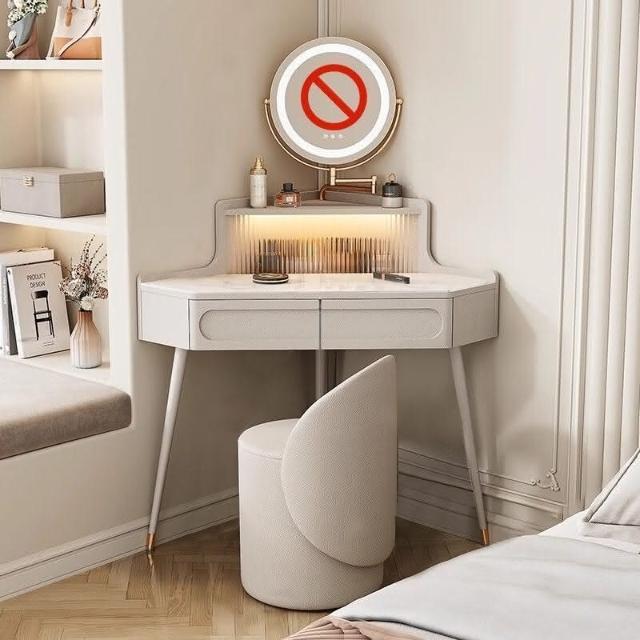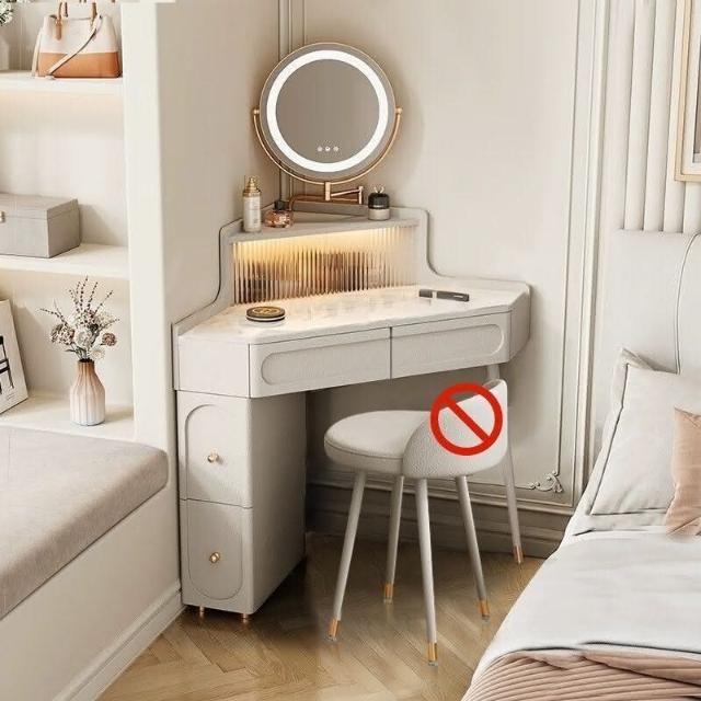 轉角化妝桌 轉角梳妝臺法式奶油風小戶型三角化妝桌巖闆臥室墻角鬥櫃一體L型化妝桌 梳妝桌 梳妝臺 化妝臺 化00