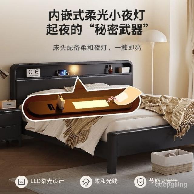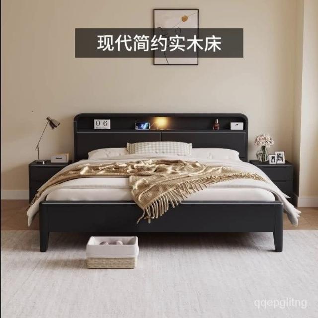 免運 簡約#木架床 北歐實木床黑色現代簡約主臥大床簡易床雙人複古臥室氣壓儲物床 實木床 5尺床 6尺床 單人床 雙人床