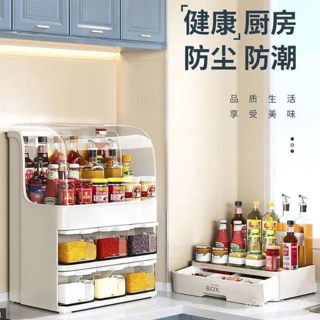 帶蓋調味調料盒套裝醬油醋瓶糖鹽罐子置物架抽屜式廚房用品收納盒廚房置物架 碗盤瀝水架 廚房收納架 洗碗池收納架 收納架 7
