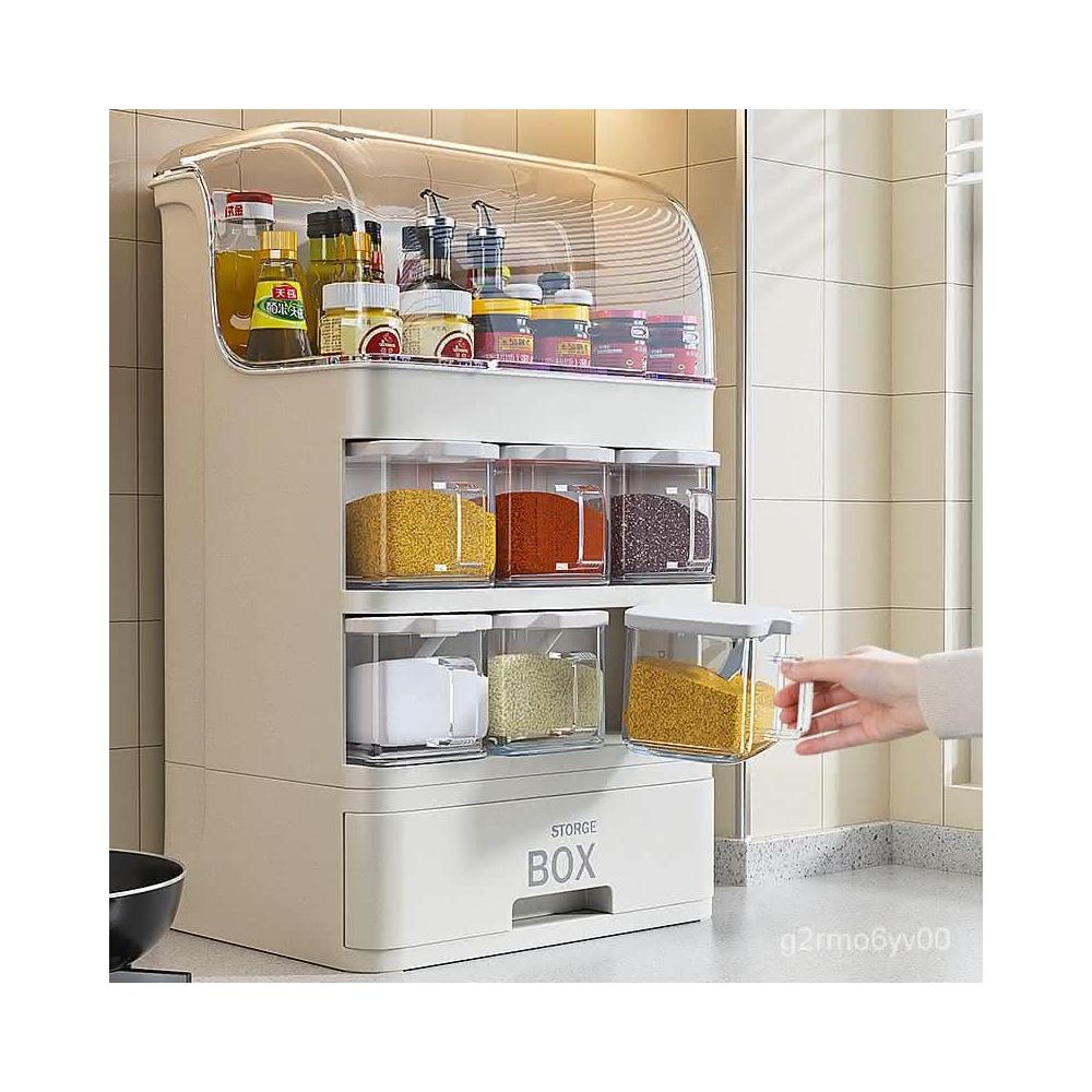 帶蓋調味調料盒套裝醬油醋瓶糖鹽罐子置物架抽屜式廚房用品收納盒廚房置物架 碗盤瀝水架 廚房收納架 洗碗池收納架 收納架 7