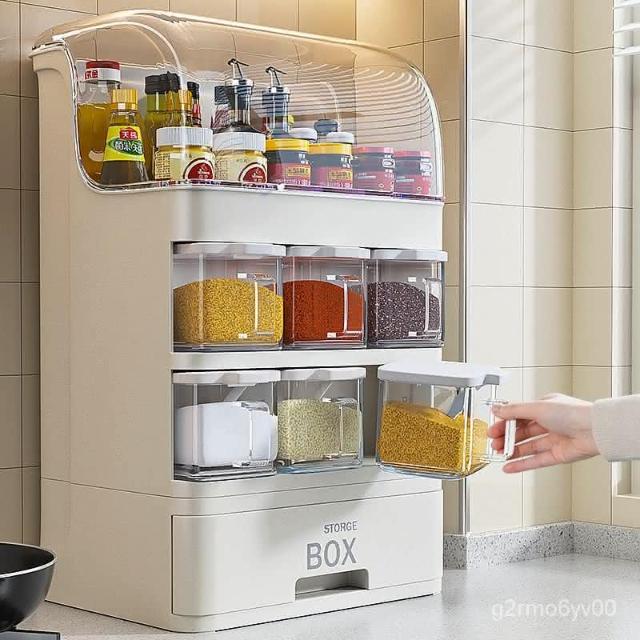 帶蓋調味調料盒套裝醬油醋瓶糖鹽罐子置物架抽屜式廚房用品收納盒廚房置物架 碗盤瀝水架 廚房收納架 洗碗池收納架 收納架 7