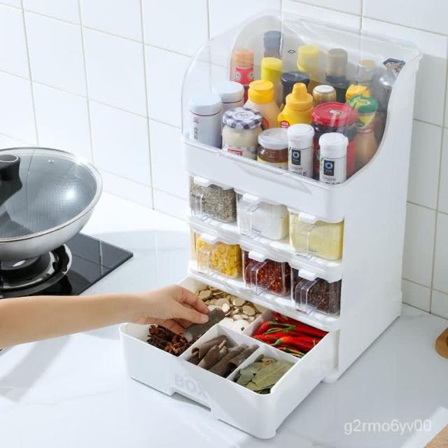 帶蓋調味調料盒套裝醬油醋瓶糖鹽罐子置物架抽屜式廚房用品收納盒廚房置物架 碗盤瀝水架 廚房收納架 洗碗池收納架 收納架 7