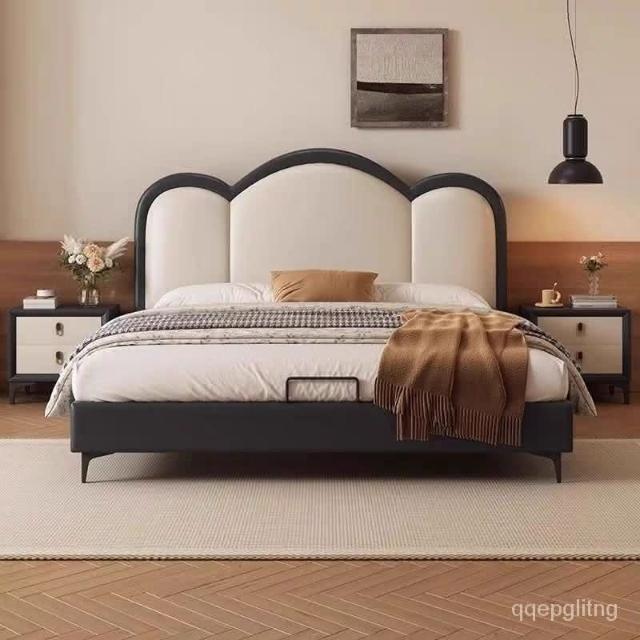 免運 簡約#木架床 北歐輕奢複古奶油風雙人床意式臥室現代簡約軟包婚床民宿美式極簡 實木床 5尺床 6尺床 單人床 雙人床