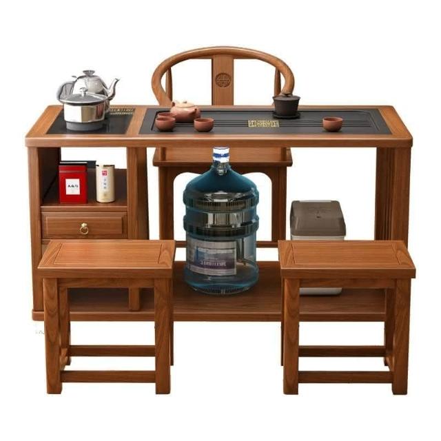 免運 工廠直銷 可移動陽臺茶桌椅組閤帶萬嚮輪全實木茶桌小戶型臺泡茶 實木泡茶桌 功夫茶 實木桌