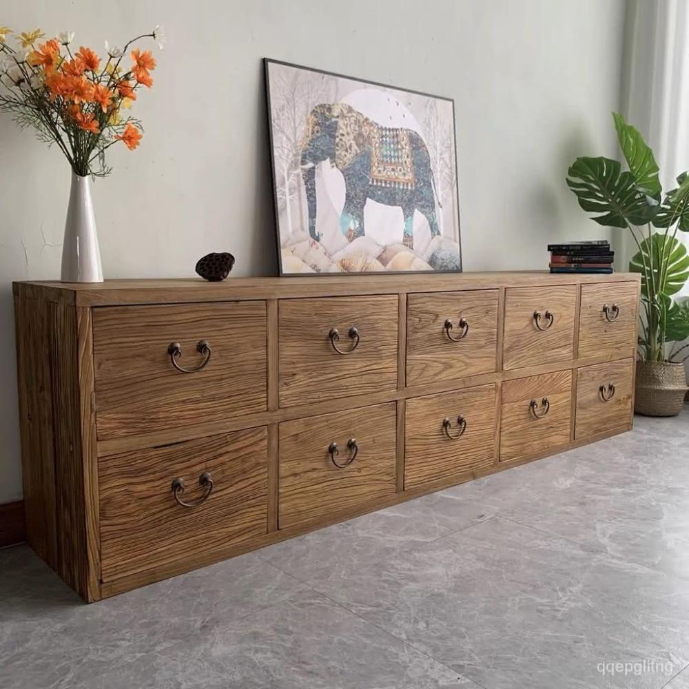 免運 輕奢電視櫃 老榆木櫃子八鬥櫃簡約儲物收納櫃複古餐邊櫃客廳落地電視櫃電視櫃 儲物櫃 收納櫃 地櫃 墻櫃