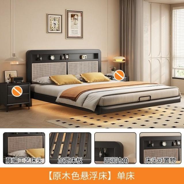 免運 簡易組裝#懸浮床 鐵藝床藤編雙人床銹鋼懸空鐵架床加粗加厚鋼架床現代簡約懸浮床 鐵架床 排骨架 3尺床 5尺床