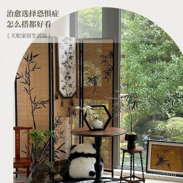 免運 可開發票 屏風 新中式隔斷屏風茶樓國風竹影主題裝飾墻背景茶室竹編圍擋陽臺改造