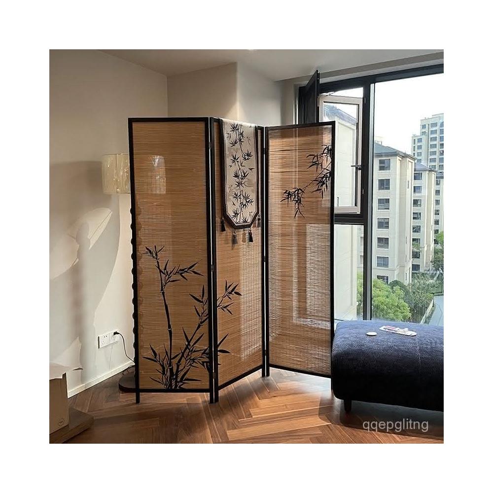 免運 可開發票 屏風 新中式隔斷屏風茶樓國風竹影主題裝飾墻背景茶室竹編圍擋陽臺改造