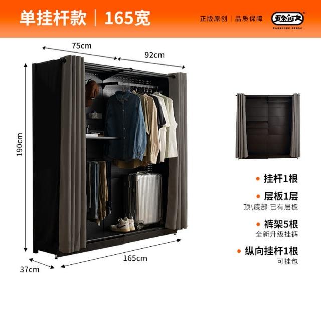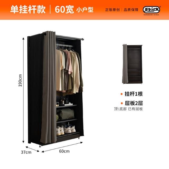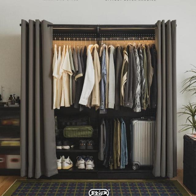 洞洞板簡易衣櫃家用卧室金屬貨架鐵藝開放式帶防塵簾衣櫥