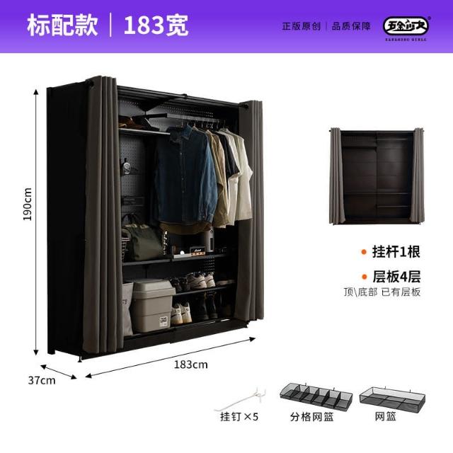 洞洞板簡易衣櫃家用卧室金屬貨架鐵藝開放式帶防塵簾衣櫥