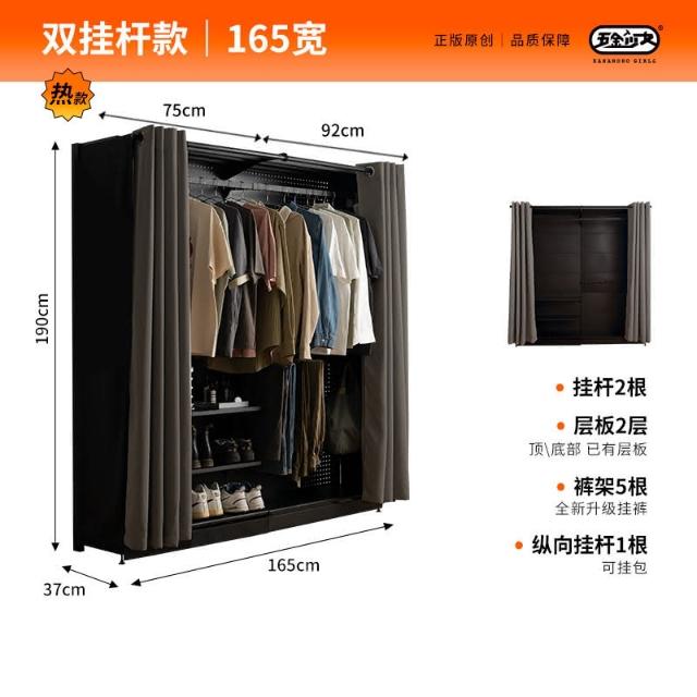 洞洞板簡易衣櫃家用卧室金屬貨架鐵藝開放式帶防塵簾衣櫥