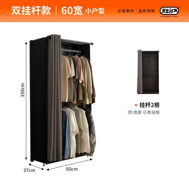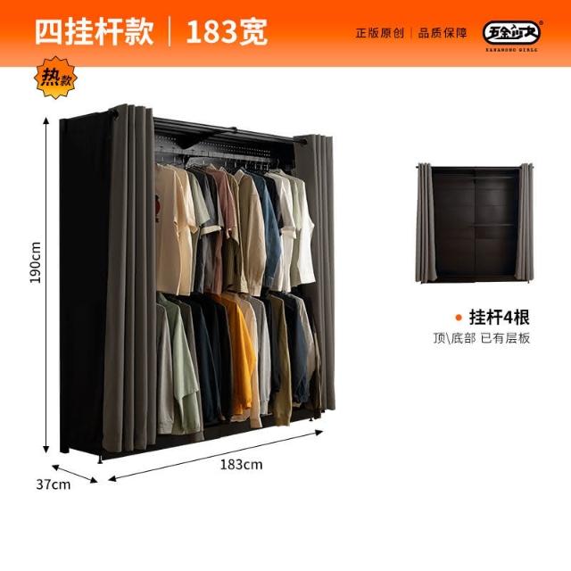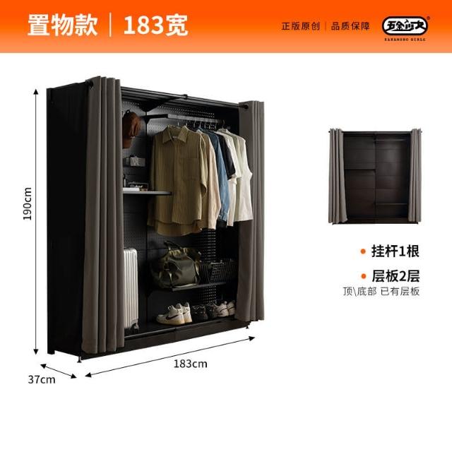 洞洞板簡易衣櫃家用卧室金屬貨架鐵藝開放式帶防塵簾衣櫥