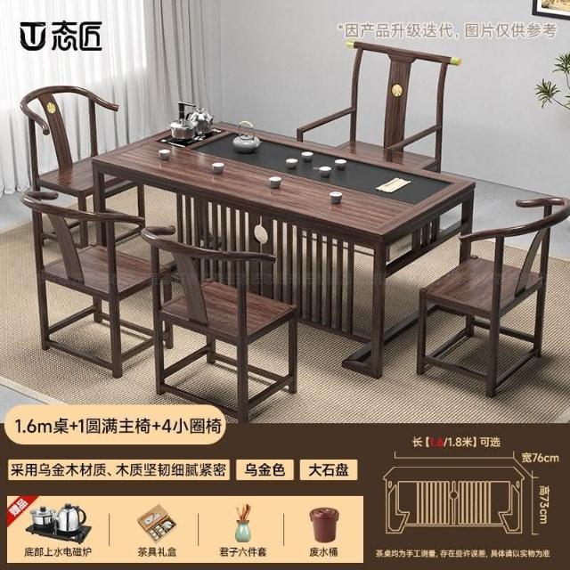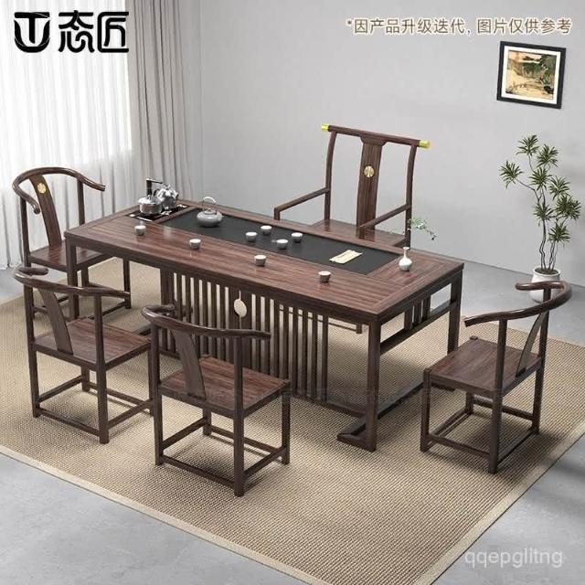 免運 工廠直銷 烏金木茶桌椅組閤禪意中式實木茶臺功夫茶幾桌泡茶桌 實木泡茶桌 功夫茶 實木桌
