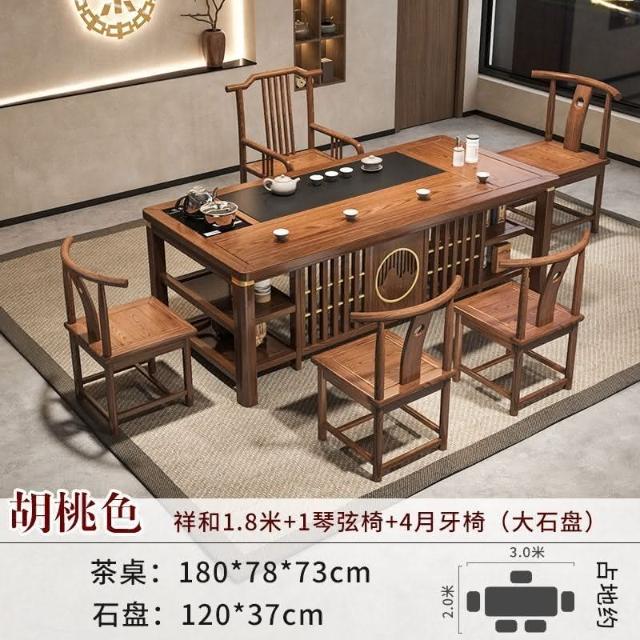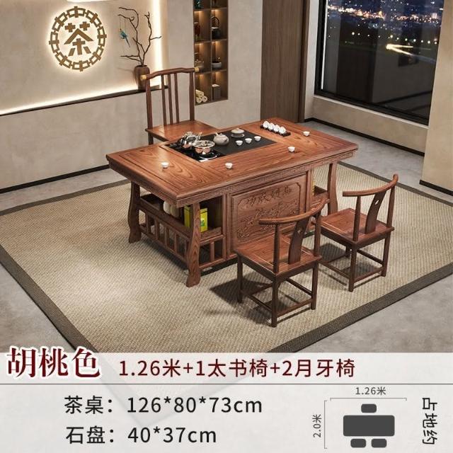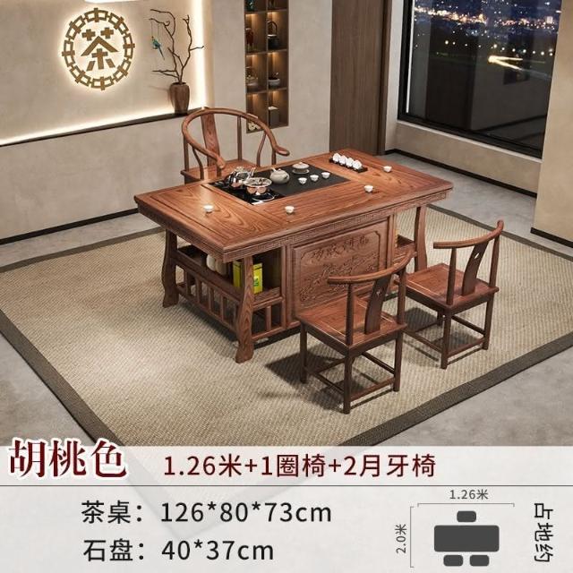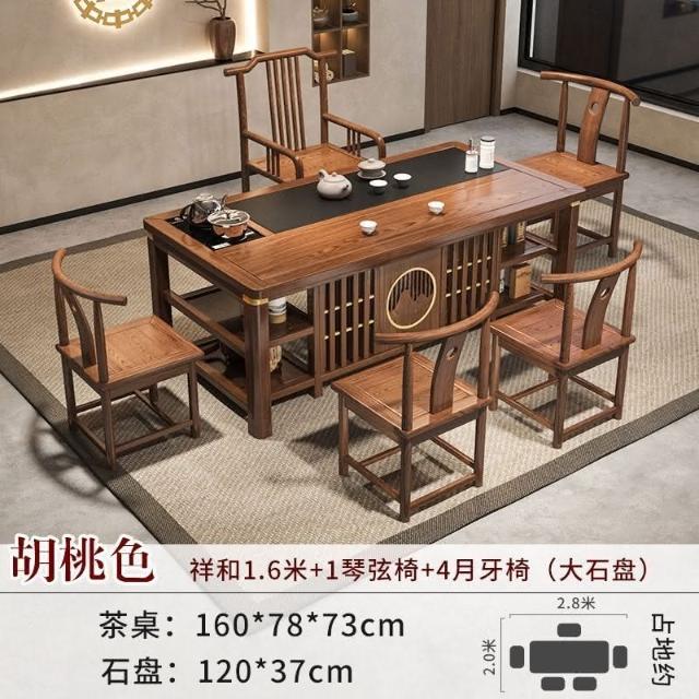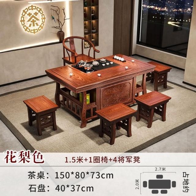 免運 工廠直銷 實木茶桌椅組閤明清古典新中式功夫茶幾整套一體辦公家用泡茶臺桌 實木泡茶桌 功夫茶 實木桌