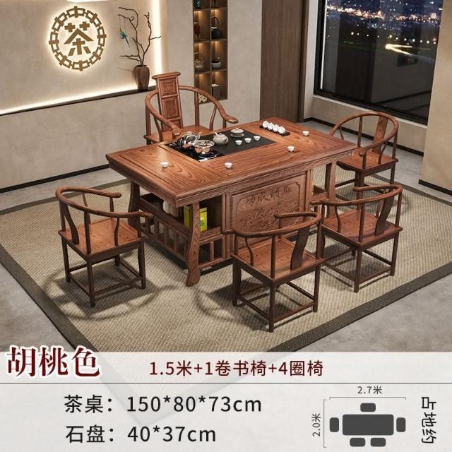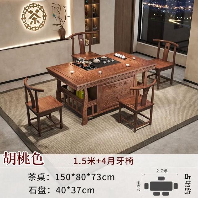 免運 工廠直銷 實木茶桌椅組閤明清古典新中式功夫茶幾整套一體辦公家用泡茶臺桌 實木泡茶桌 功夫茶 實木桌