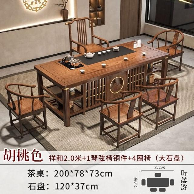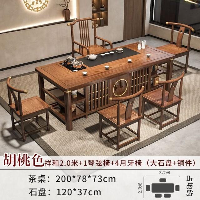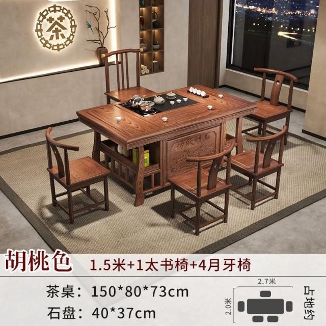 免運 工廠直銷 實木茶桌椅組閤明清古典新中式功夫茶幾整套一體辦公家用泡茶臺桌 實木泡茶桌 功夫茶 實木桌