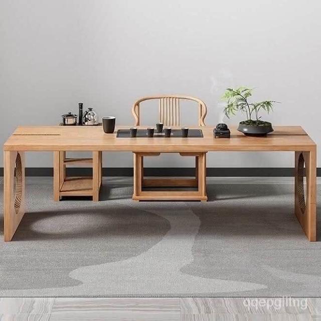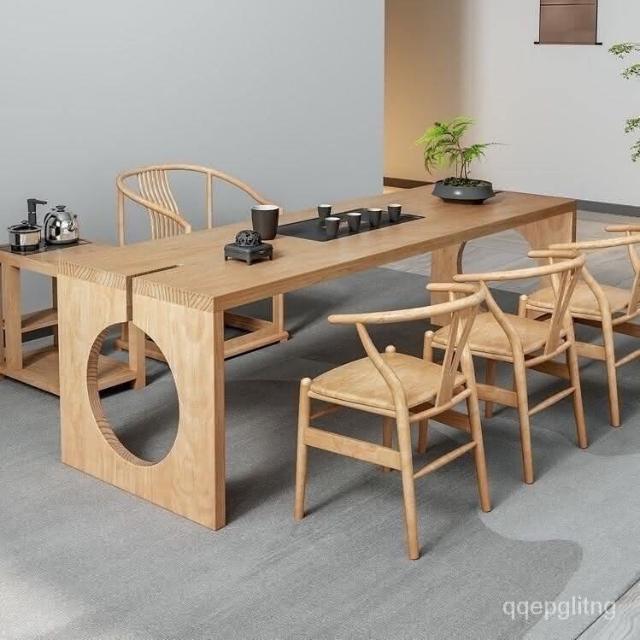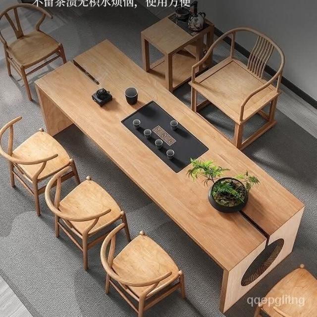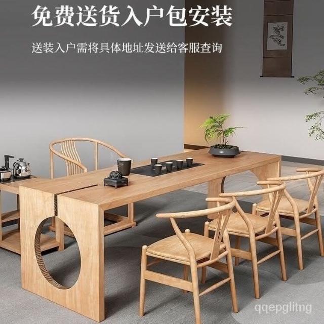 免運 工廠直銷 現代簡約中式茶桌椅組閤實木一整套客廳一體泡茶桌原木禪意茶臺桌 實木泡茶桌 功夫茶 實木桌