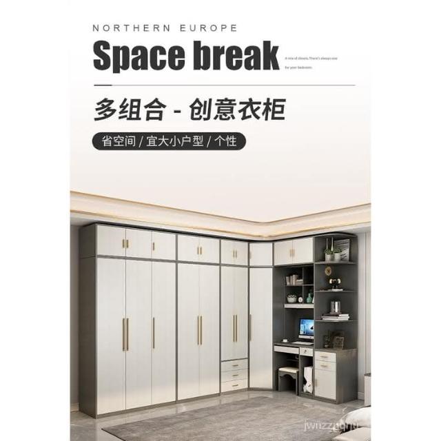 可訂制 轉角衣櫃傢用臥室書桌一體組閤帶梳妝臺90度鑽石型 l型衣帽間衣櫥 TESA