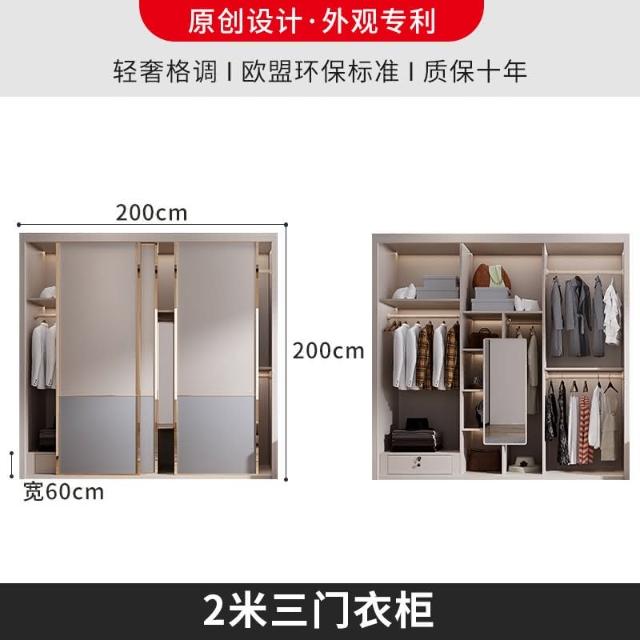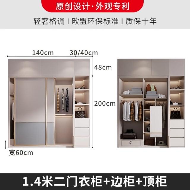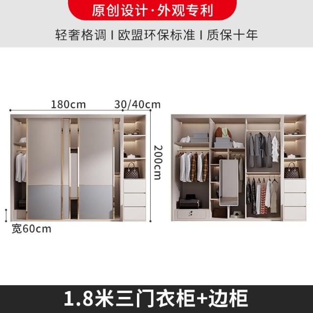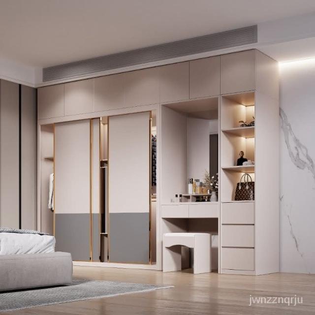 可訂制 衣櫃簡約現代推拉門臥室電腦桌梳妝臺轉角櫃一體免安裝移滑門衣櫥 DWI4
