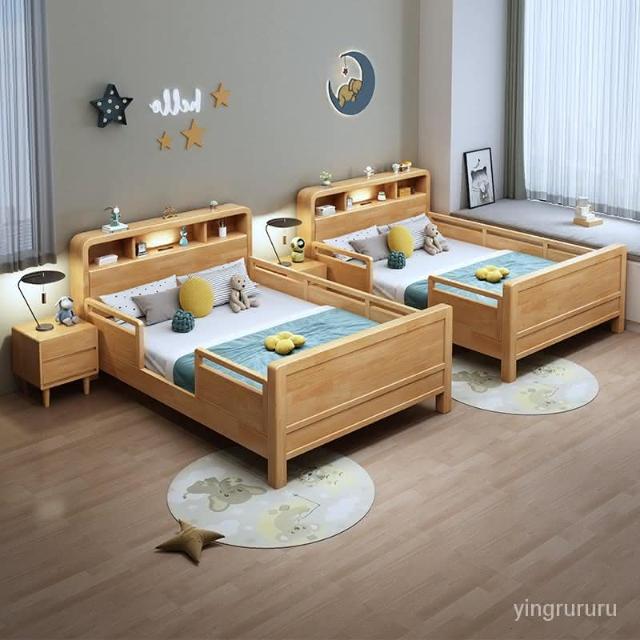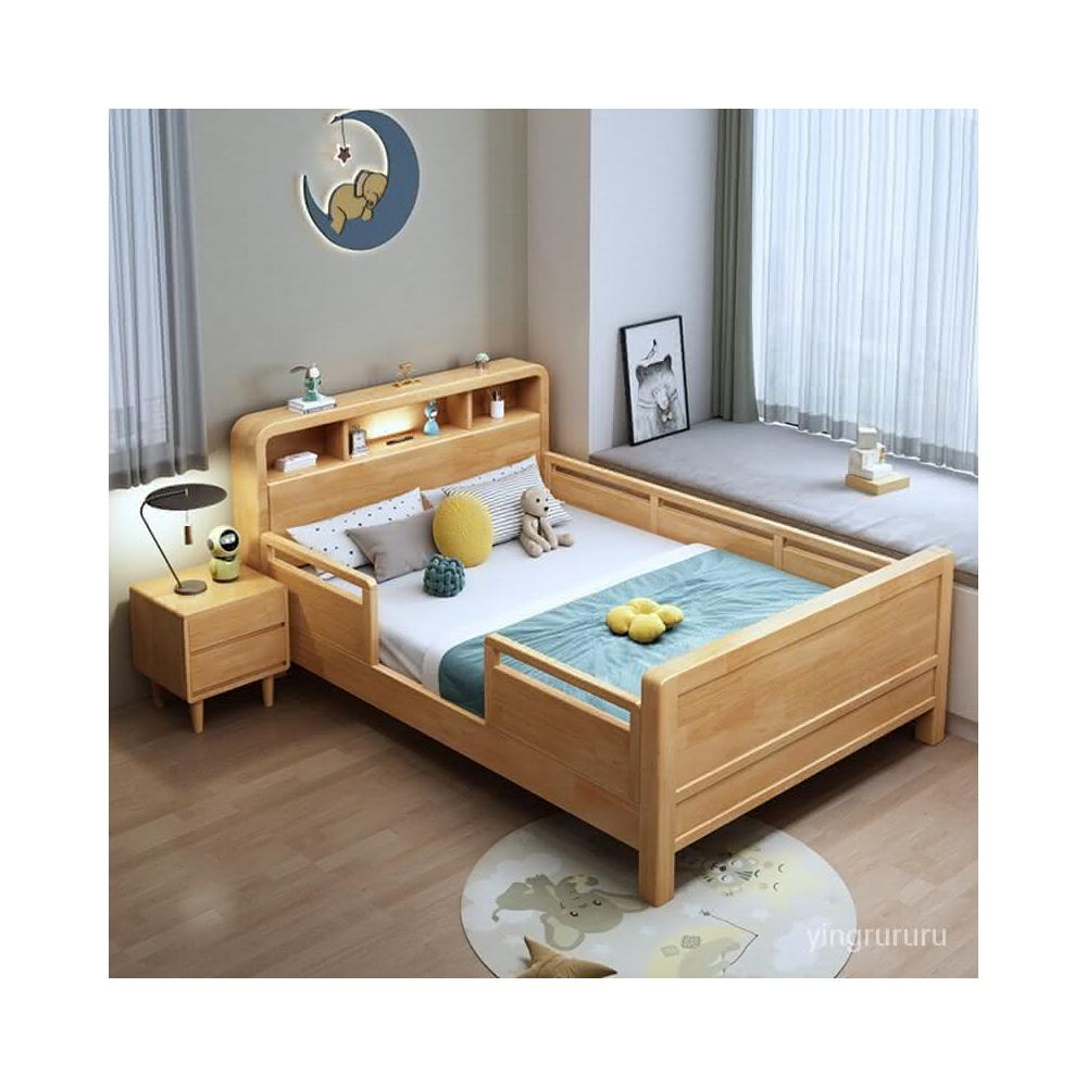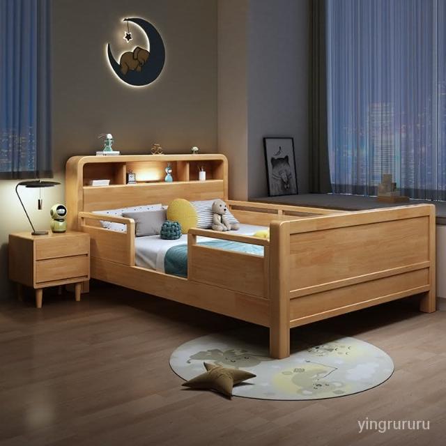 免運 兒童實木床帶護欄學生單人床1.2米小孩床1.5拚接床1.35小戶型傢具 不晃不響 實木床 雙人床 大床 H4IW