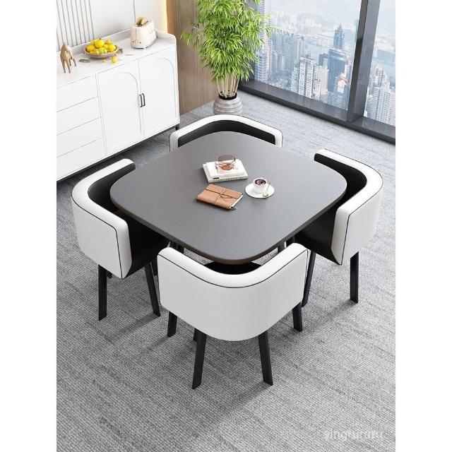 免運 優選品質 簡約方形洽談桌椅組閤店鋪商鋪休息區洽談桌會客休閒接待方桌椅 VT7H
