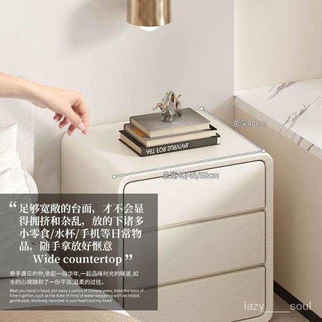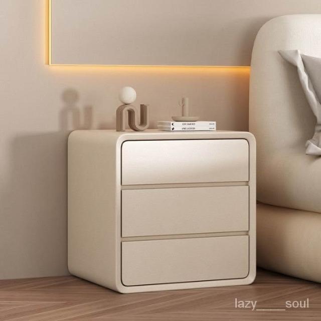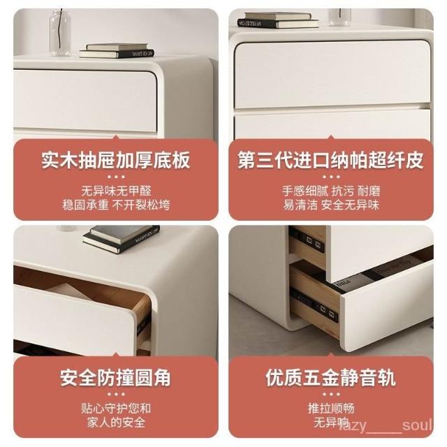 床頭櫃簡約現代奶油風極簡實木三層高55意式輕奢皮質免安裝收納櫃床頭櫃、床邊櫃、置物收納桌 小櫃子、床櫃、收納櫃 雙抽櫃