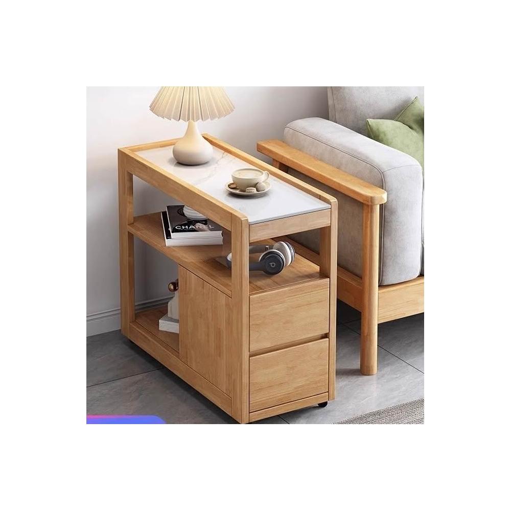居傢首選 全實木沙髮邊櫃側邊櫃巖闆客廳茶邊櫃儲物櫃角幾可移動極窄小邊桌沙發邊櫃
